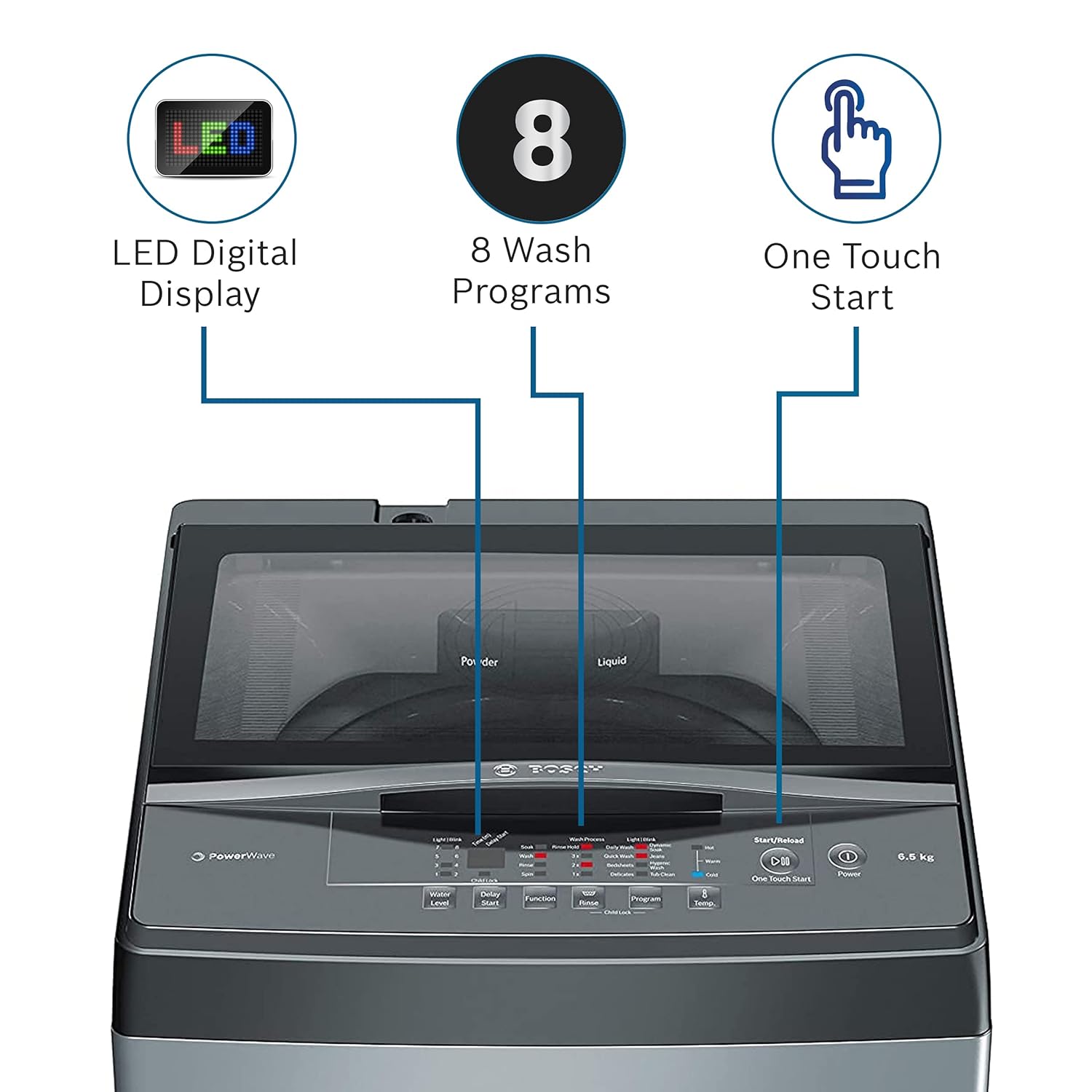 Bosch Top Load Washing Machines are built to give you the flexibility to choose your detergent, be it liquid or powder detergents