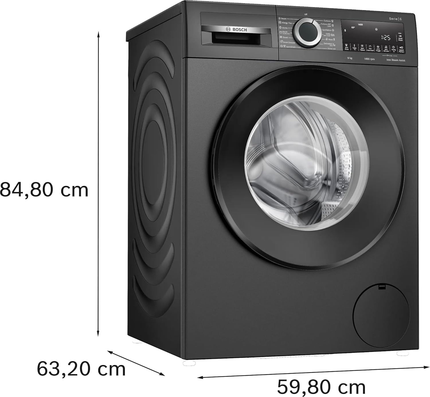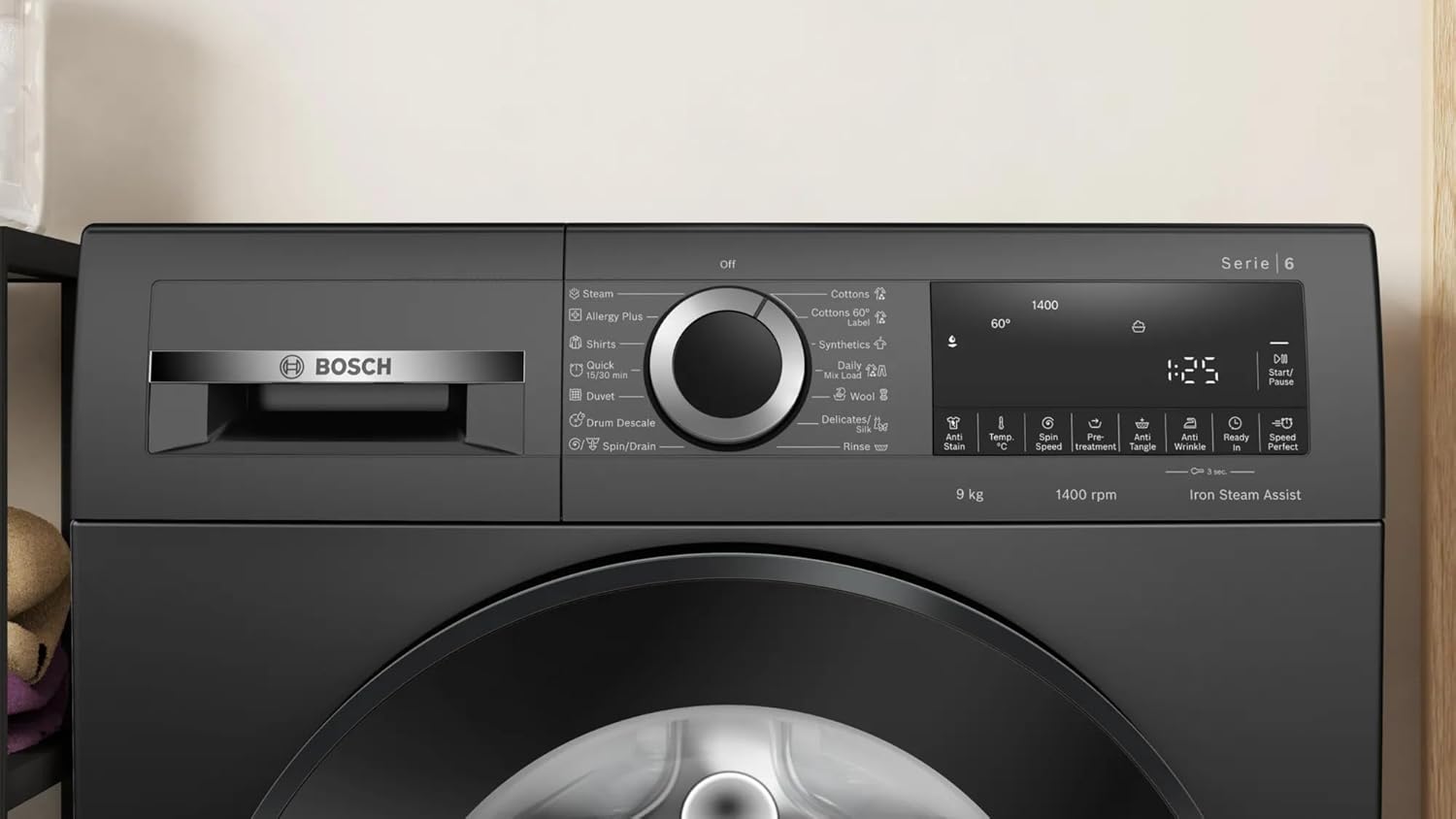 Bosch 9kg 5 Star Anti Wrinkle & Steam Care Fully Automatic Front Load Washing Machine with Built in Heater (WGA244ZTIN, Black Grey)