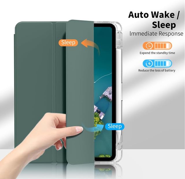 Boxome Tablet Case Cover for Apple iPad Pro 11 inch M4 [Auto Sleep/Wake Cover] [Pencil Holder] [Trifold Stand][Frosted Back] – Dark Green
