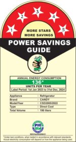 Energy Rating: 5 Star Refrigerator – High Energy Efficiency | Annual Energy Consumption: 136 KWH.
