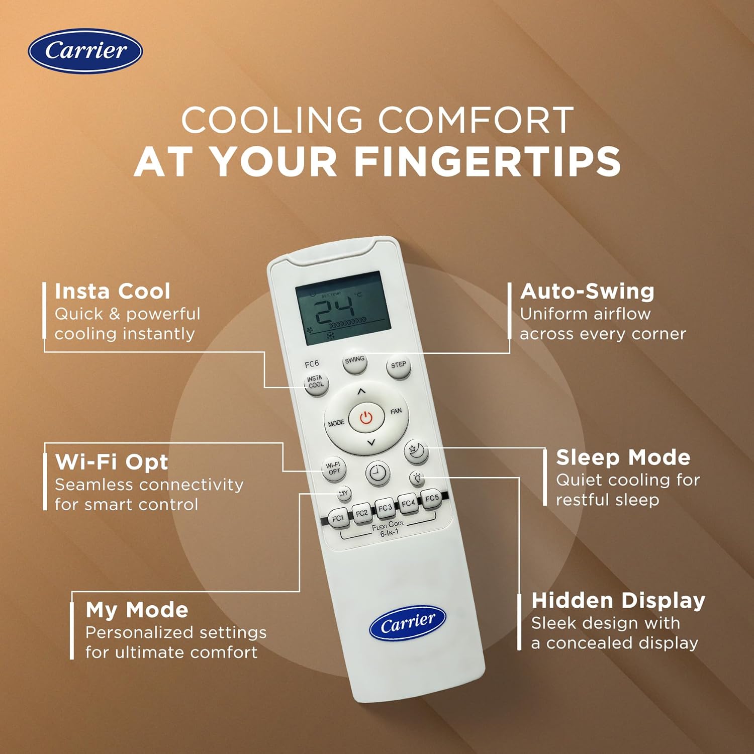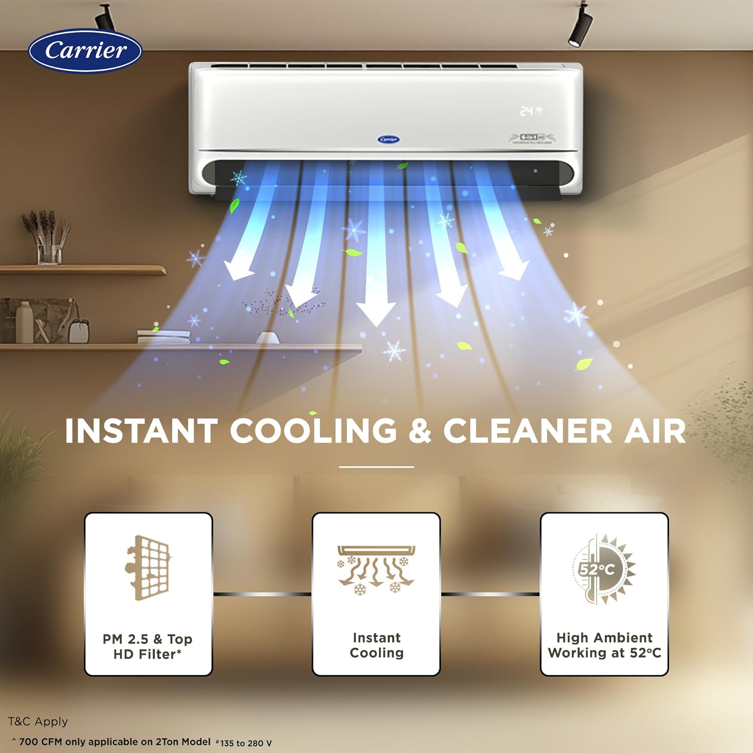 Carrier INDUS Fxi SMART 1 Ton 5 Star Split Inverter AC | FlexiCool 6-in-1 | Fast Cooling | High Ambient Cooling Upto 55°C | Smart Energy Display | Air Conditioner with Intelligent CRF Alert