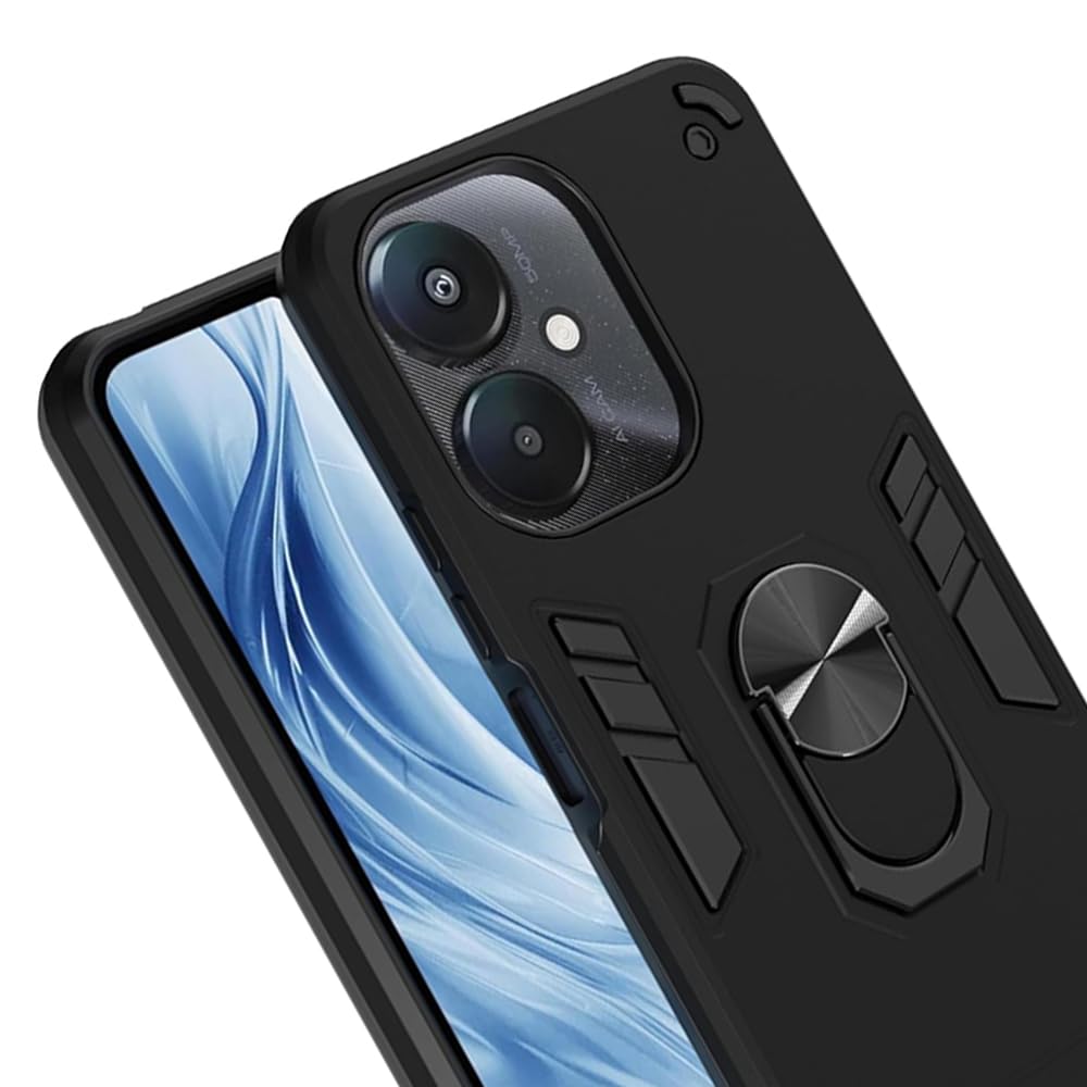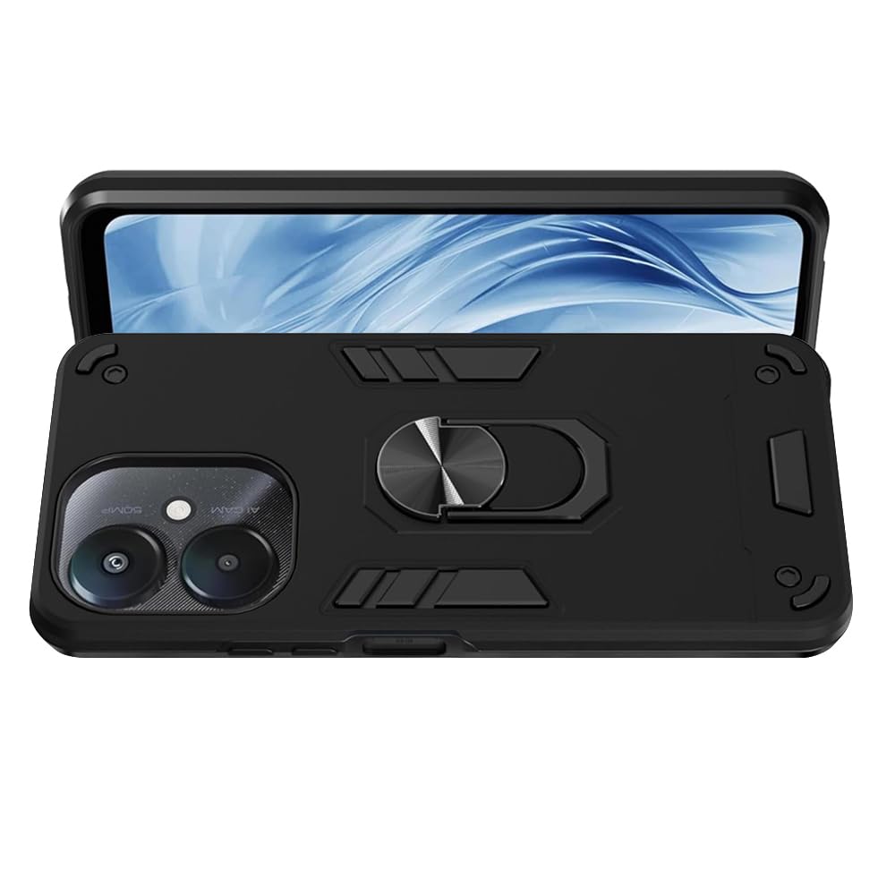 Casotec Armor Mi Redmi 13C 5G / Poco M6 5G Defender Case | Rotating Ring Holder & Kickstand in-Built | Military Grade Armor | 360 Degree Protection Back Cover for Mi Redmi 13C 5G / Poco M6 5G (Black)