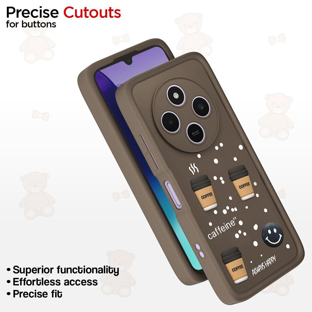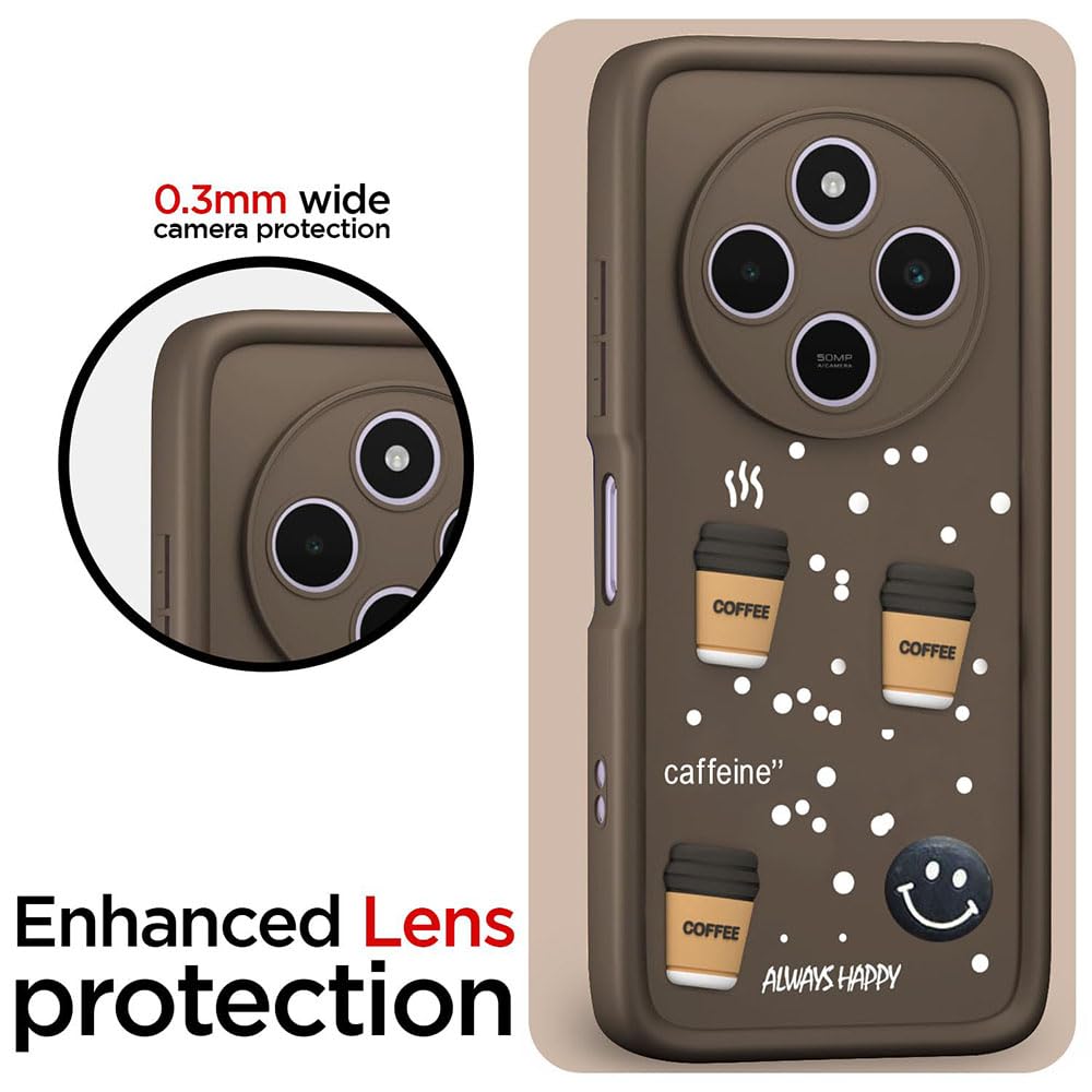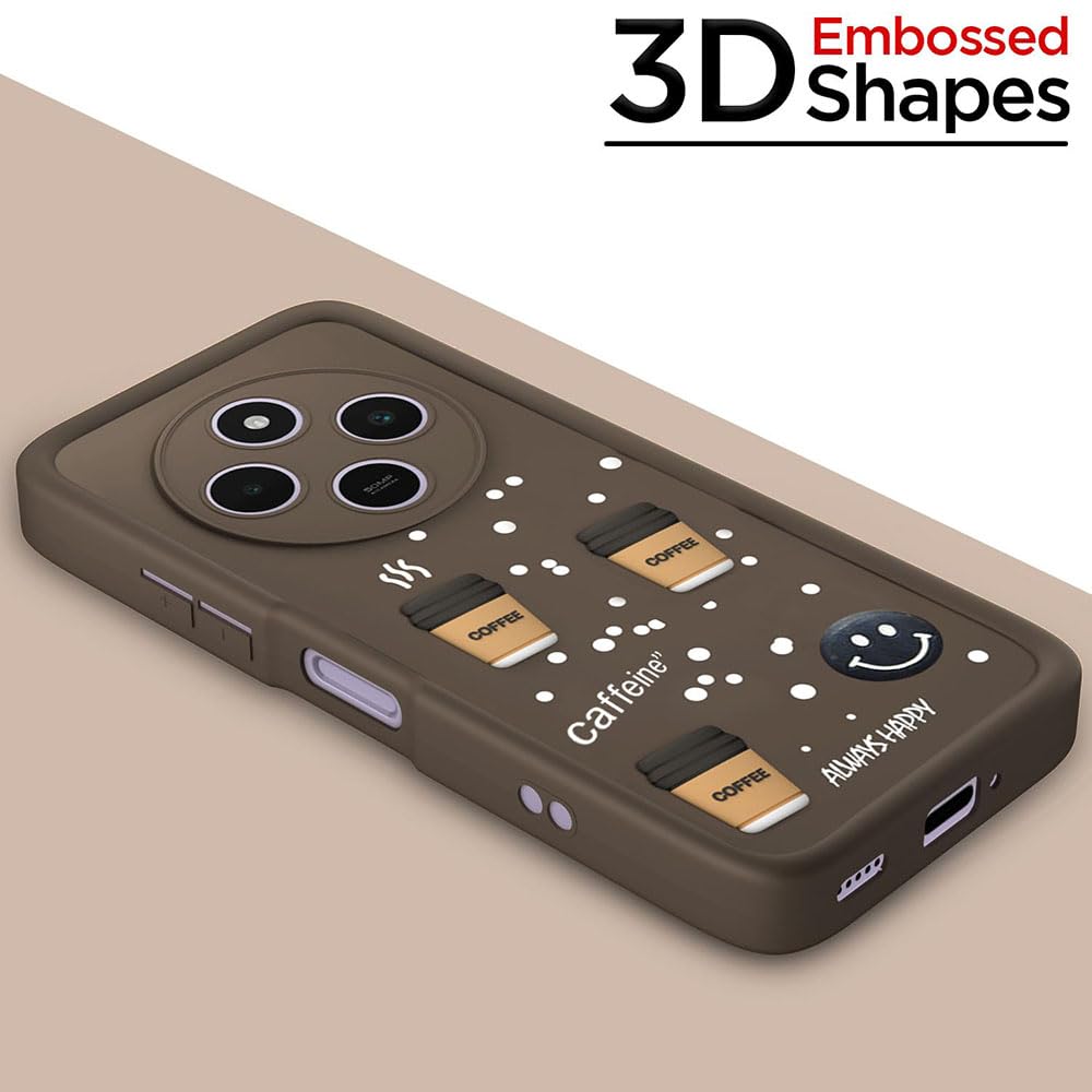 Casotec Soft TPU Coffee Theme Back Cover for Mi Redmi A4 5G / 14C 5G / 14R 5G / Poco C75 5G / M7 5G | Cute 3D Coffee Mug & Smile Design | Anti-Slip Matte Finish | Shockproof & Lightweight Case – Brown