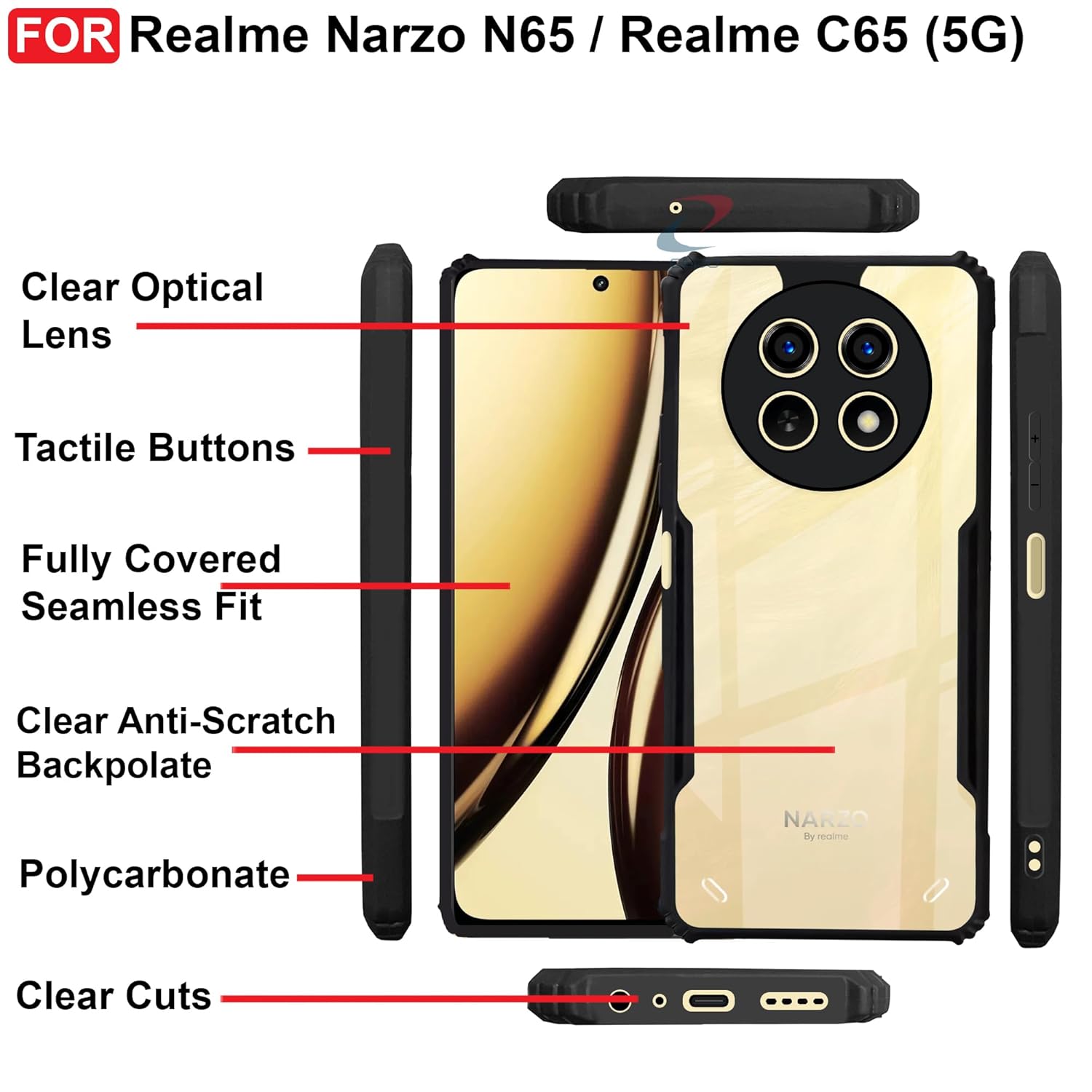 CEDO Realme Narzo N65 / Realme C65 (5G) Back Case Cover | Camera Protection Shockproof Bumper-Edge | Acrylic Crystal Clear 360 Degree Protection TPU+PC | Transparent Eagle Back Case Cover (Black)