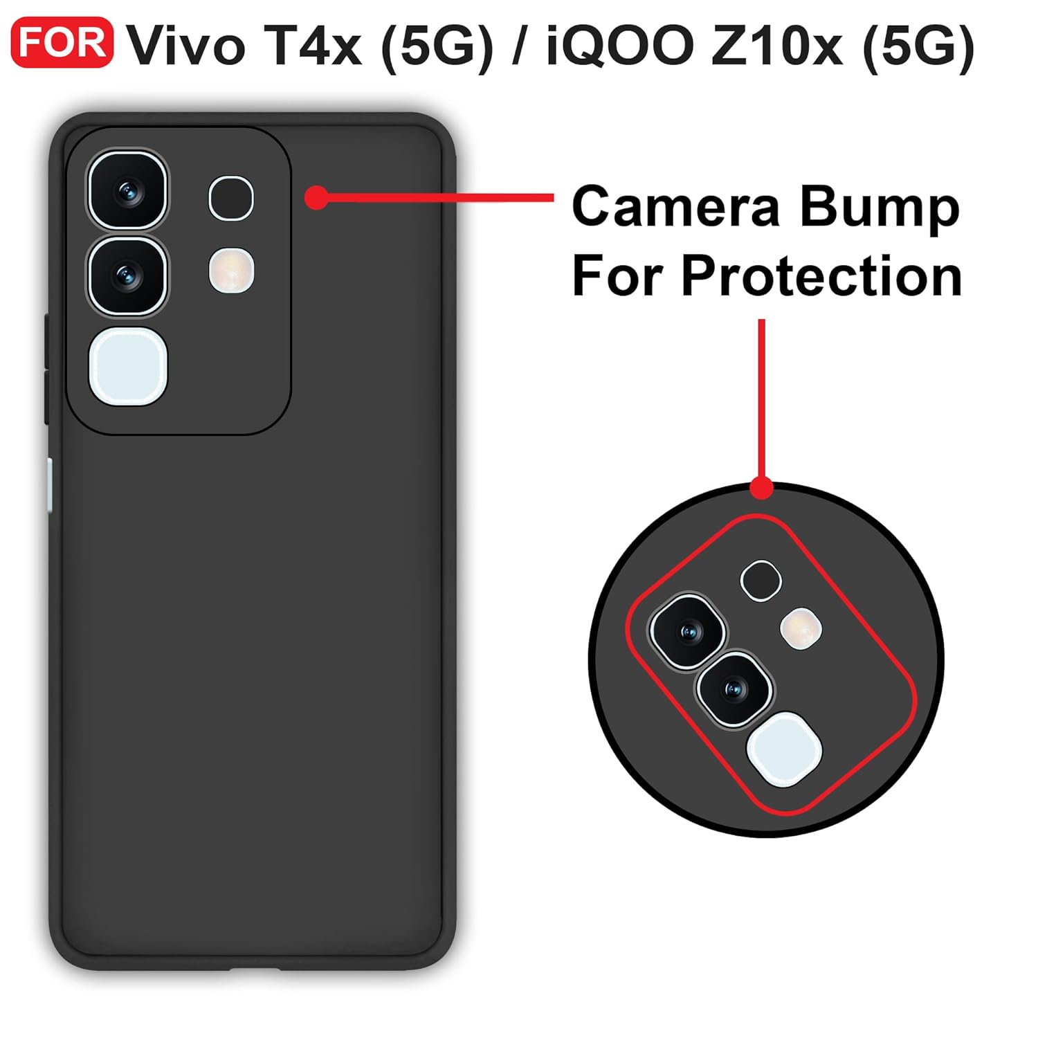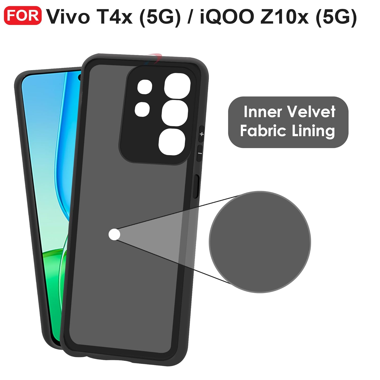 CEDO Vivo T4x (5G) / iQOO Z10x (5G) Back Cover | Camera Bump Protection & Inner Velvet Fabric Lining | Ultra Slim Matte Soft Rubberised Case Cover (Black)