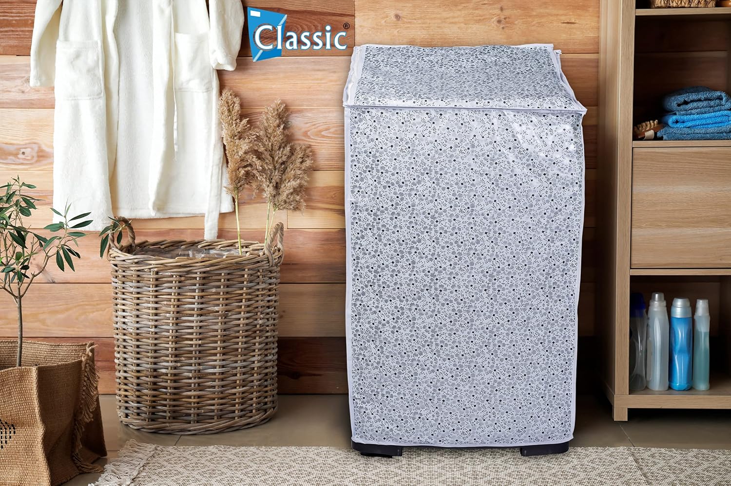 Classic® Top Load Washing Machine Cover Suitable For Whirlpool 360° / Stain Wash Back Panel 6.0 Kg, 6.5 Kg, 7 Kg, 7.2 Kg, 7.5 Kg (58Cms X 58Cms X 93Cms) White & Grey – Fabric