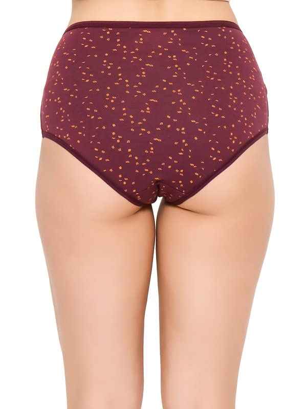 Clovia Women’s Cotton High Waist Printed Hipster Panty in Maroon
