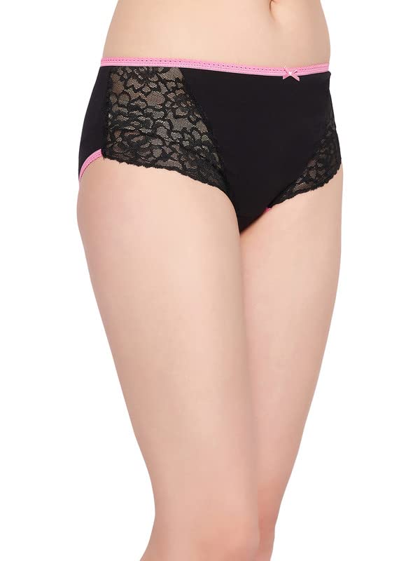 Clovia Women’s Cotton Mid Waist Hipster Panty with Lace Wings in Black