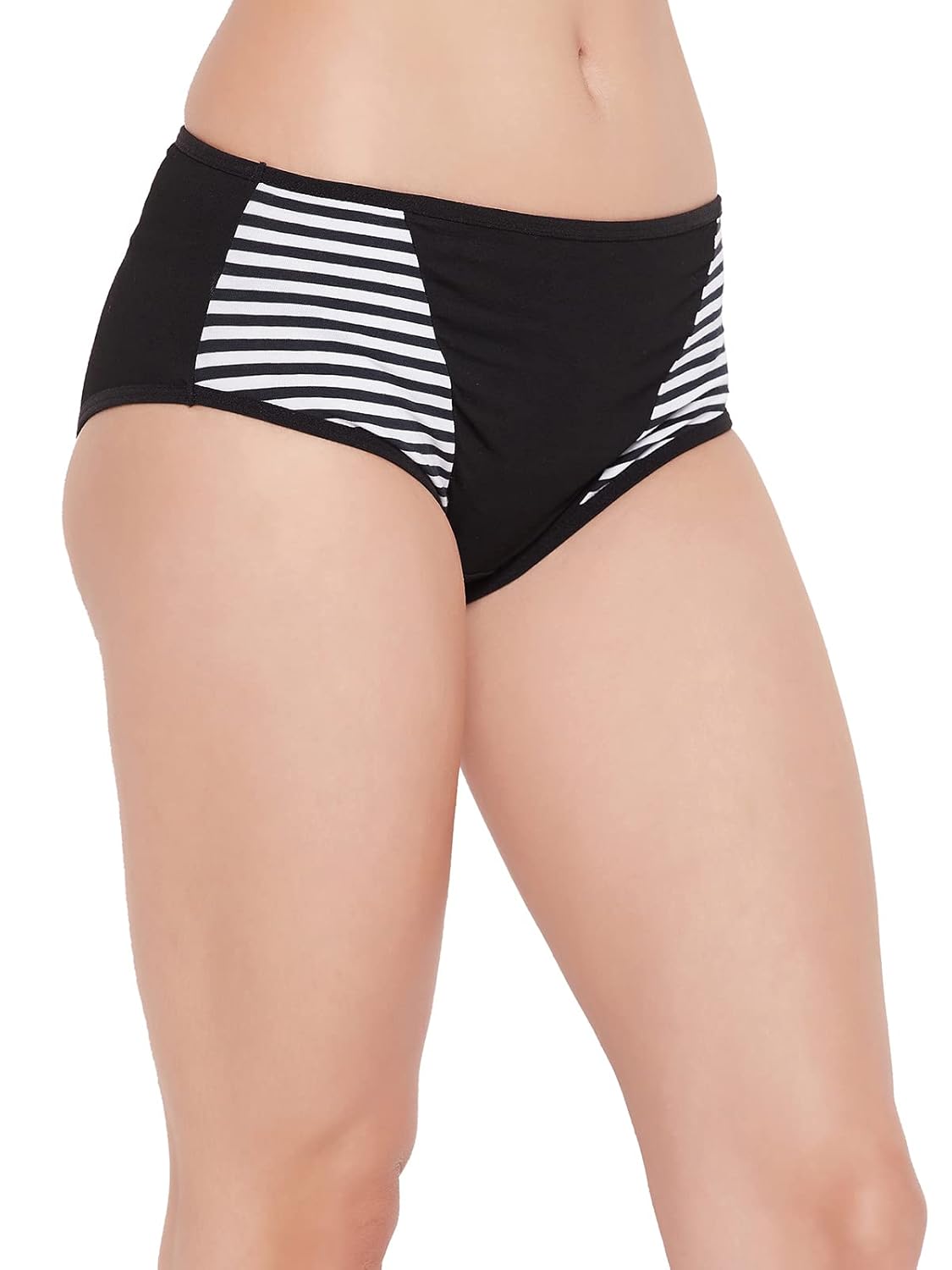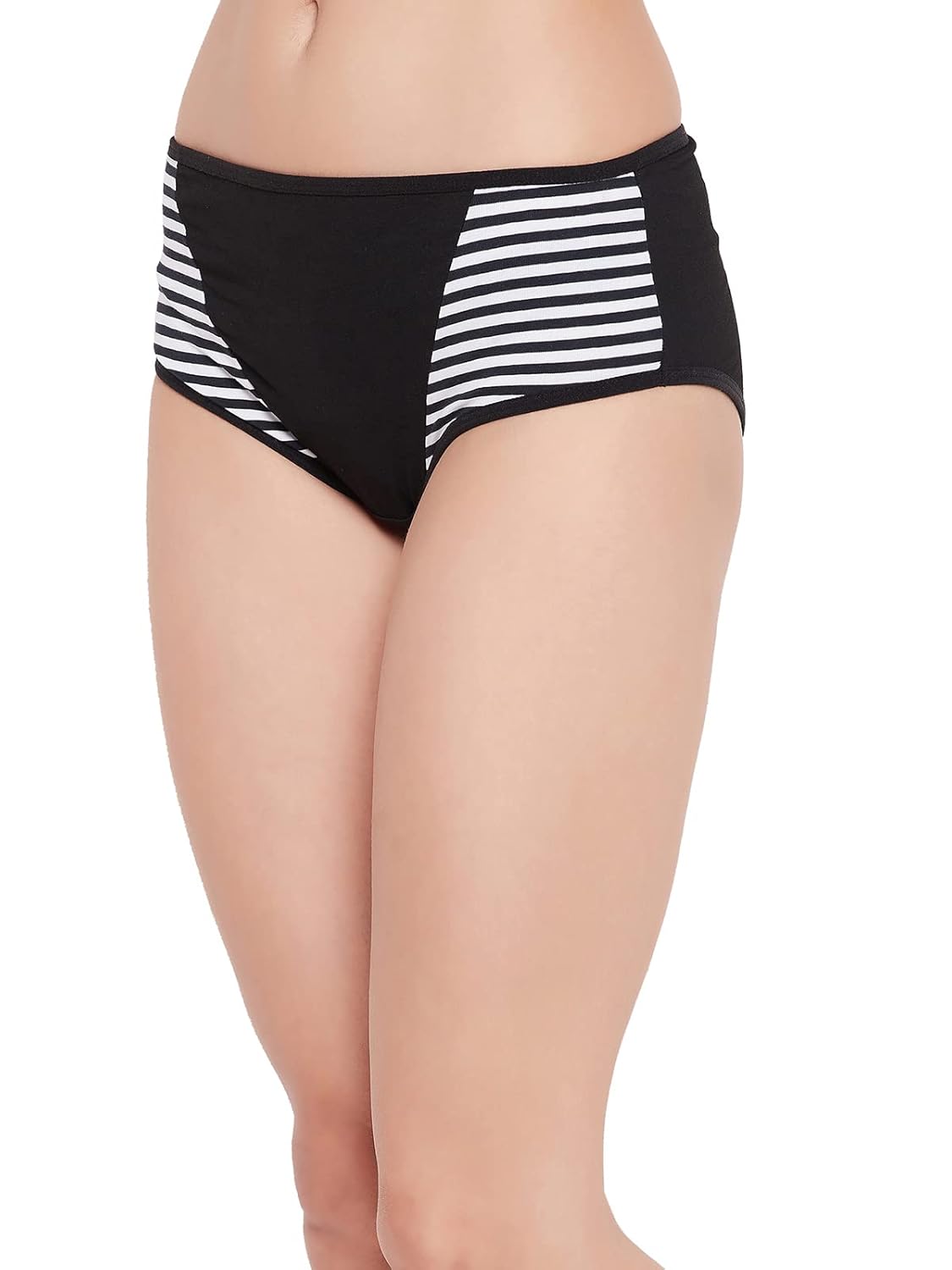 Clovia Women’s Cotton Mid Waist Hipster Panty with Striped Panels in Black