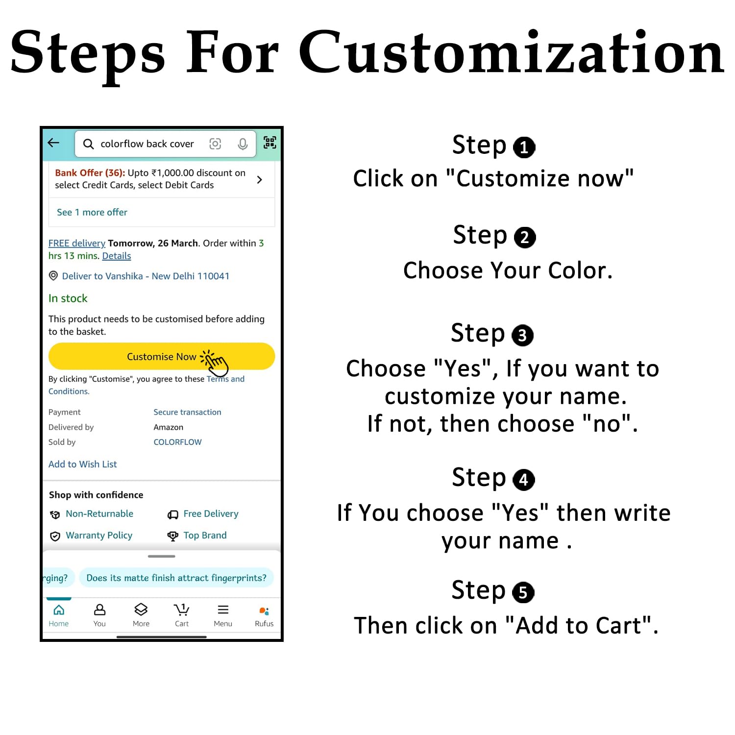 COLORflow Back Cover Compatible with Samsung S24 5G | Floral Names Color Customized Back Cover Compatible with Samsung Galaxy S24 5G