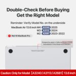 Note: Designed ONLY to be compatible with MacBook Air 13.6 inch 2025 2024-2022 M4 M3 M2 Chip with Liquid Retina Display & Touch ID (Model: A3240 / A3113 / A2681). WARNING: This case is NOT compatible with other model laptops
