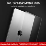 Compatible for MacBook Air 13.6 inch Case M4 M3 M2 2025 2024-2022 Release Model A3240 A3113 A2681, Sturdy Protective Hard Shell Case Cover for MacBook Air M2 13 inch – Matte Clear