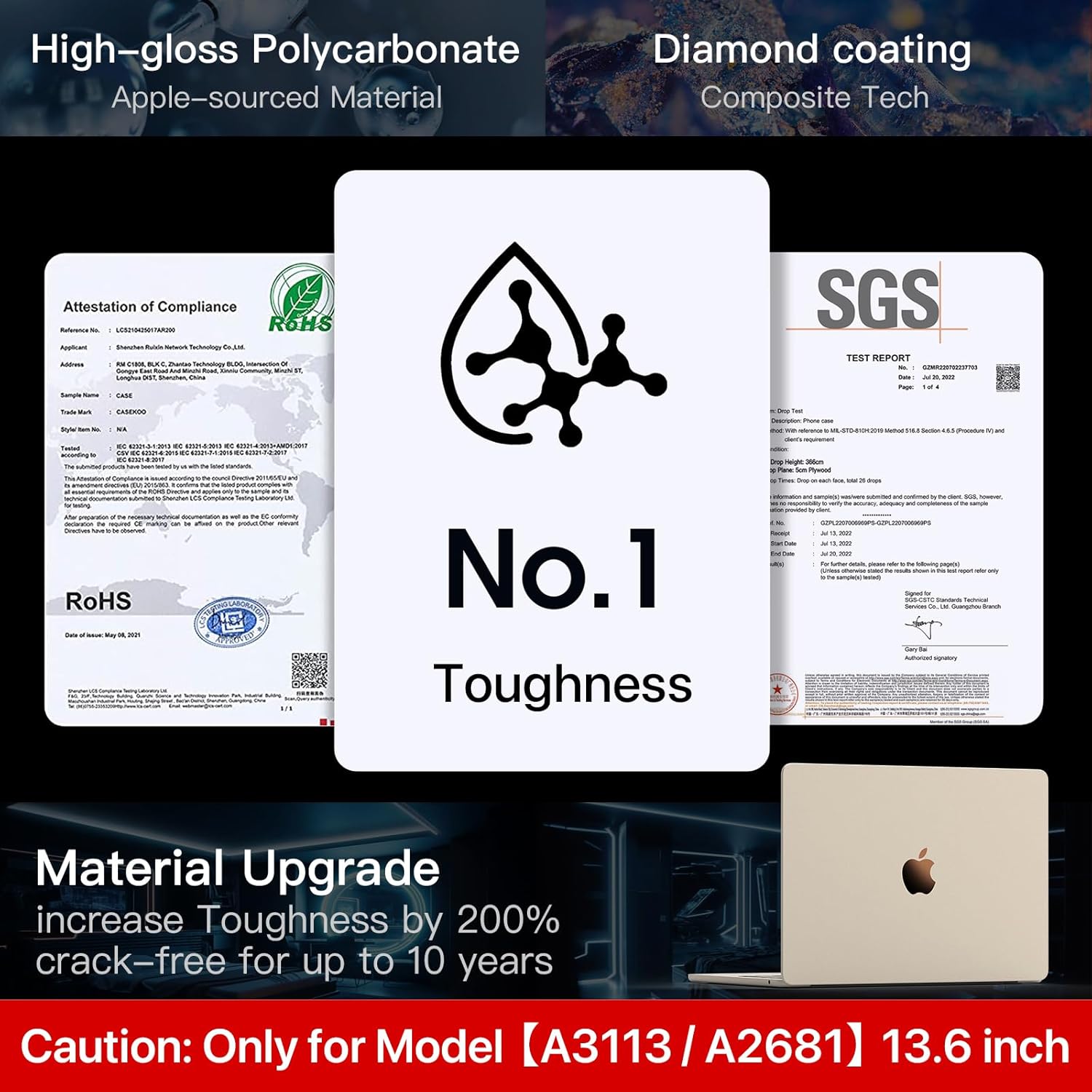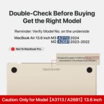 Note: Designed ONLY to be compatible with MacBook Air 13.6 inch 2025 2024-2022 M4 M3 M2 Chip with Liquid Retina Display & Touch ID (Model: A3240 / A3113 / A2681). WARNING: This case is NOT compatible with other model laptops