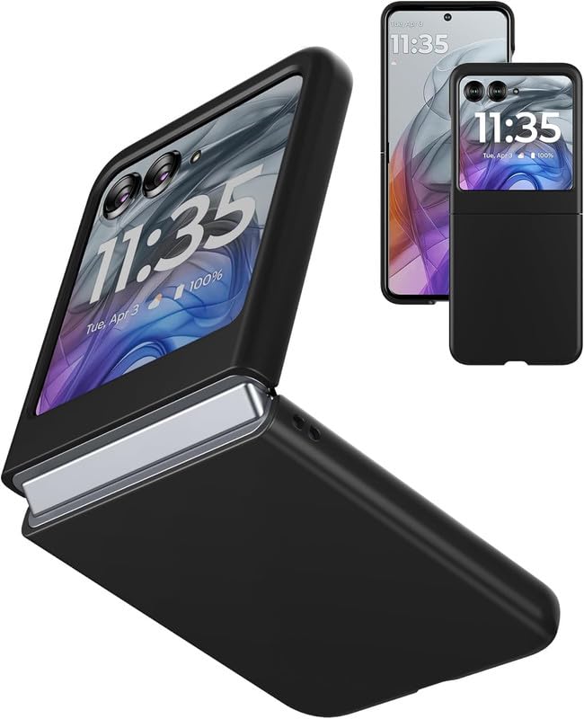 ConnectPoint Solid Hard PC Shock Proof Hybrid Edge to Edge Bumper Hard Case Back Cover for Motorola Razr Plus 2024, Moto Razr+ 2024 – Black
