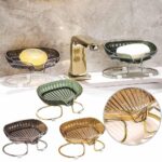 This elegant soap holder is designed to keep your soap dry and cleanly displayed. Crafted from durable gold-colored metal, it features raised edges that allow water to easily drain away after washing your hands. The open design maintains airflow to prevent soap from getting soggy or developing bacteria. Small yet sturdy feet lift the holder just above the counter or edge of the tub, so no water can pool underneath. Its simple but stylish look complements any bathroom decor without taking up much space. Whether in the shower, by the sink or near the tub, this soap dish is a thoughtful way to keep your soap hygienically stored while enhancing the bathroom aesthetic. Cleans easily under running water for continued beauty and performance.