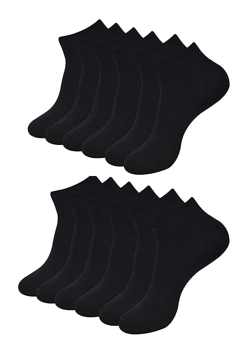 Cotson Men’s Cotton Plain Black Ankle Length Sports Socks for Running and Casual Wear -12 Pairs