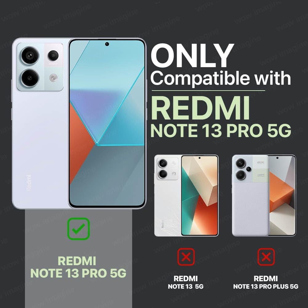 This fit for only REDMI Note 13 Pro 5G and POCO X6 5G…,NOT FIT FOR REDMI Note 13 5G, REDMI Note 13 Pro PLus 5G , Correct fit with Protection & easy access to all buttons – Designed to fit the contour precisely – Made of good material and extremely easy to fit and remove -tection against dust, dirt, bumps & scratches – Easy access to all controls & buttons. Hard Back quality material, protects your mobile from bumps, damages and cracks.