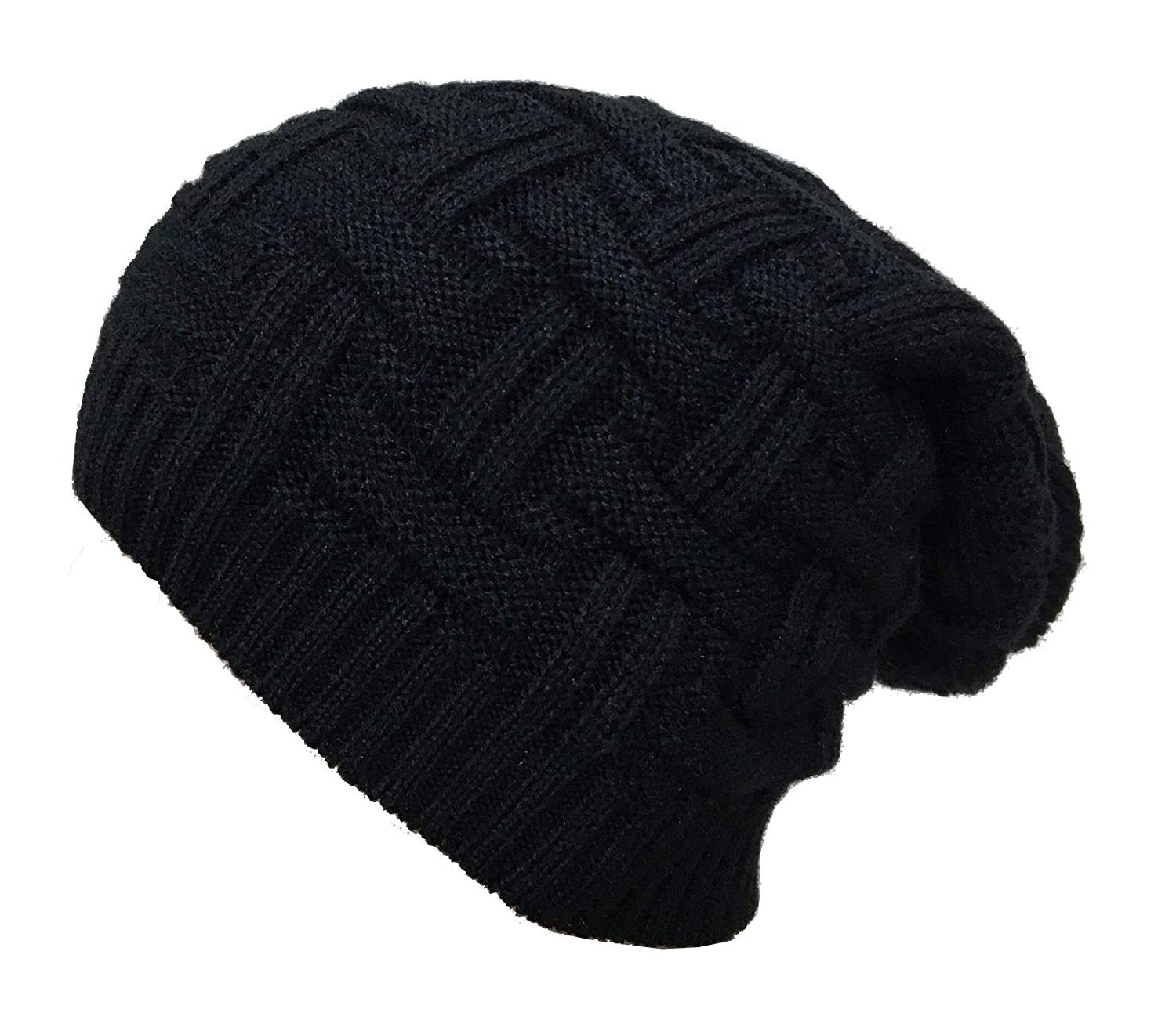 CRUMPLED Beanie Cap for Men Women Skull Slouchy Winter Woolen Knitted Black Inside Fur Mens Caps, Freesize (Black)
