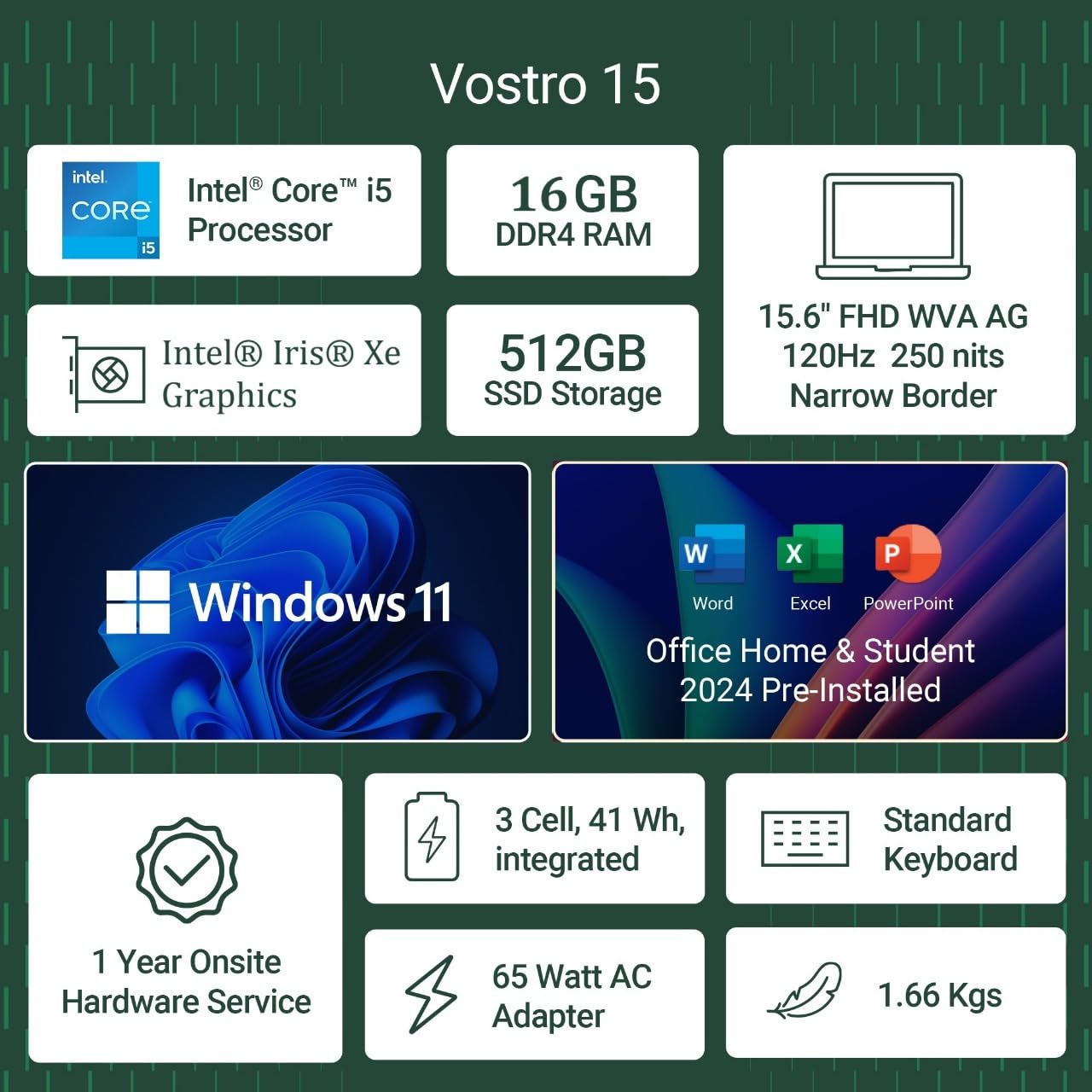 Dell 15 Intel Core i5 13th Gen – 1334U, 16GB DDR4 RAM, 512GB SSD, FHD 15.6″/39.62 cm, Windows 11, MSO’21, Silver, 1.62kg, 120Hz 250 nits, Backlit KB, 15 Month McAfee, Thin & Light Laptop