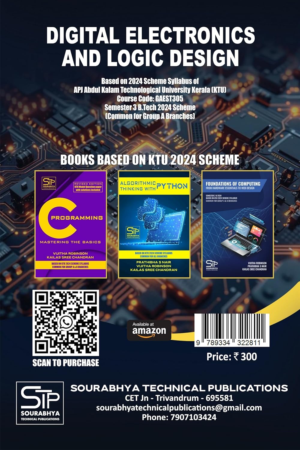 This textbook has been prepared in alignment with the syllabus of Digital Electronics and Logic Design for the third semester B.Tech (Group A branches) under the 2024 Scheme of APJ Abdul Kalam Technological University (KTU). Course code: GAEST305 Includes portions for DIGITAL LAB PCCSL308 BOOK HIGHLIGHTS: ✅𝙲𝚘𝚟𝚎𝚛𝚜 𝟷𝟶𝟶% 𝚜𝚢𝚕𝚕𝚊𝚋𝚞𝚜 ✅𝙲𝚘𝚗𝚝𝚎𝚗𝚝𝚜 𝚏𝚘𝚛 *𝙿𝙲𝙲𝚂𝙻𝟹𝟶𝟾 𝙳𝙸𝙶𝙸𝚃𝙰𝙻 𝙻𝙰𝙱* 𝚒𝚗𝚌𝚕𝚞𝚍𝚎𝚍 ✅𝙳𝚎𝚝𝚊𝚒𝚕𝚎𝚍 𝚎𝚡𝚙𝚕𝚊𝚗𝚊𝚝𝚒𝚘𝚗 𝚘𝚏 𝐕𝐄𝐑𝐈𝐋𝐎𝐆 ✅𝙼𝚘𝚍𝚞𝚕𝚎-𝚠𝚒𝚜𝚎 𝚀𝚞𝚎𝚜𝚝𝚒𝚘𝚗 𝙱𝚊𝚗𝚔 ✅𝙿𝚛𝚎𝚟𝚒𝚘𝚞𝚜 𝙶𝙰𝚃𝙴 𝚚𝚞𝚎𝚜𝚝𝚒𝚘𝚗𝚜