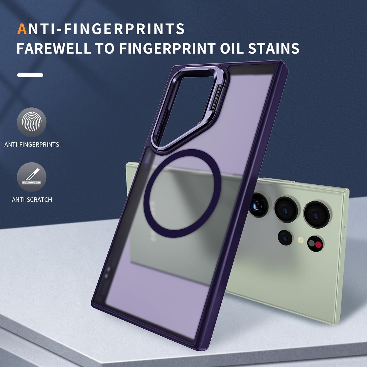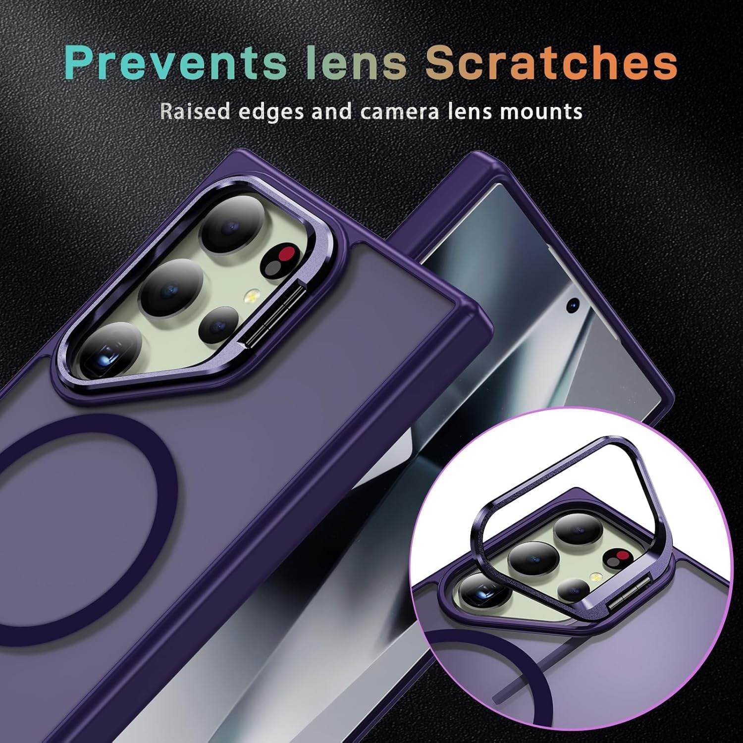 DIZORO TPU Samsung Galaxy S24 Ultra Case Compatible with Mag Safe&Wireless Charging,with Camera Stand,Military Grade Drop Tested,Translucent Hard Back Soft Edge Back Cover(Titanium Deep)