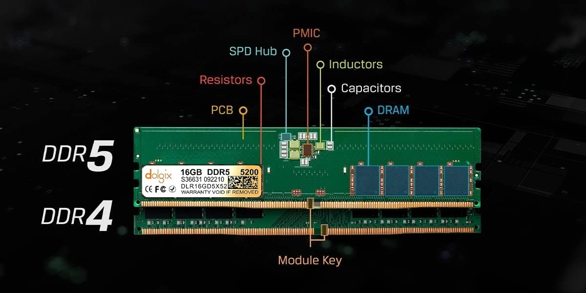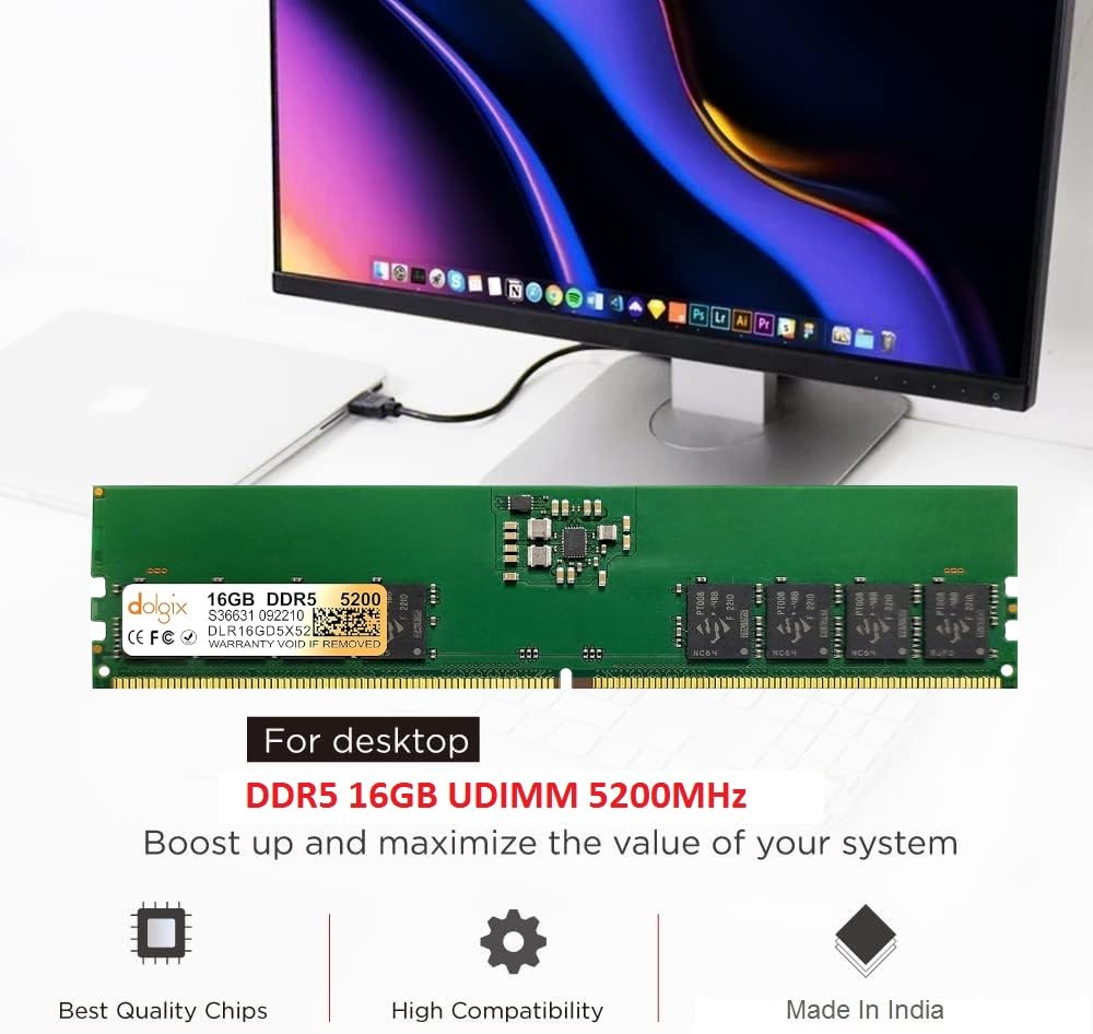 Dolgix 16GB DDR5 5200MHz | Desktop RAM (Memory) U-DIMM | Long-DIMM |CL-40 | Volt-1.1/1.25v XMP |1Rx8 Single Rank| PC5-41600 | 3 Year Warranty (Made in India)