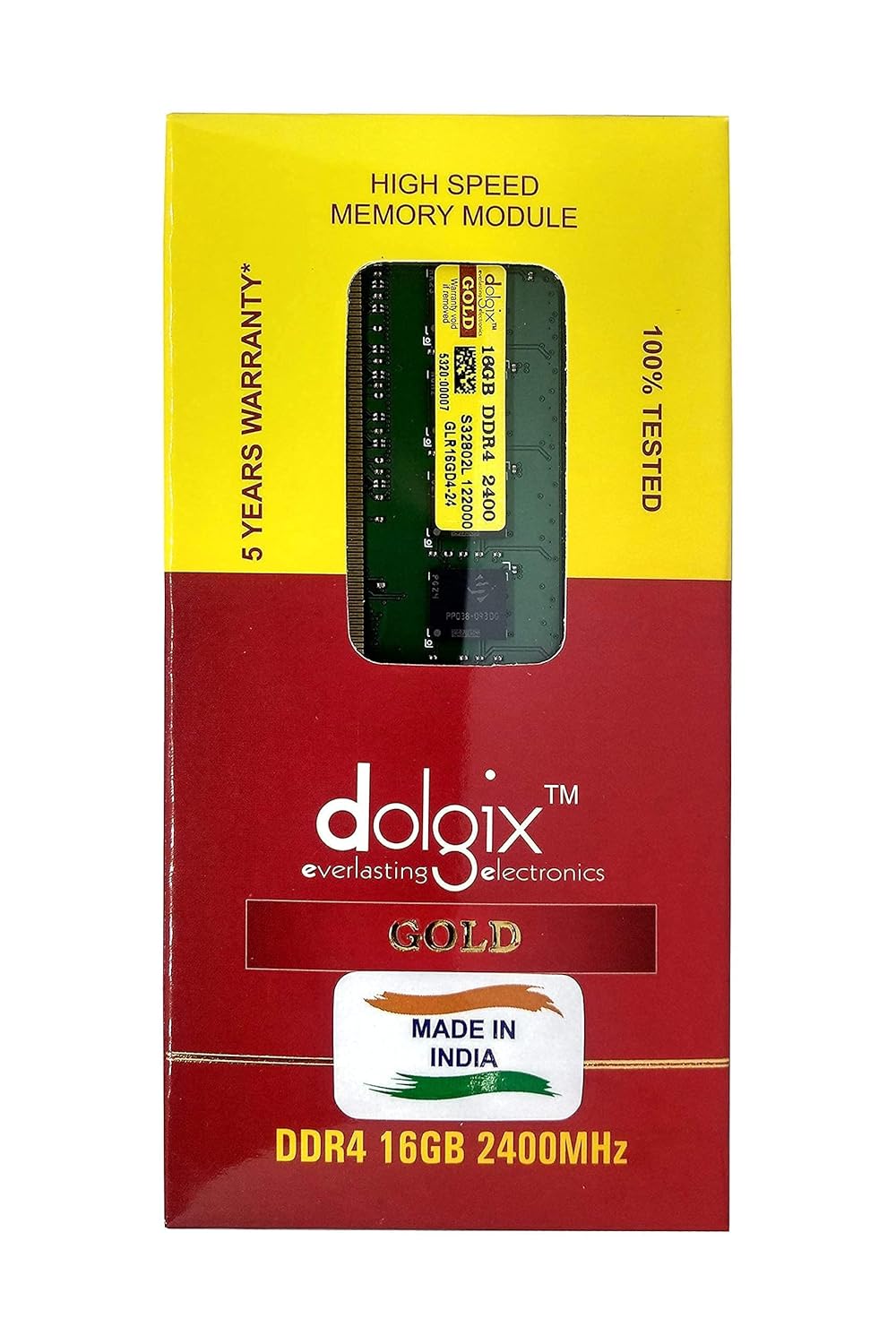 Dolgix Gold 16GB DDR4 2400MHz Desktop RAM (Memory) U-DIMM | Long-DIMM | CL- 17 | PC4-19200 | 2Rx8 Dual Rank | 5Year -Warranty (Made in India)