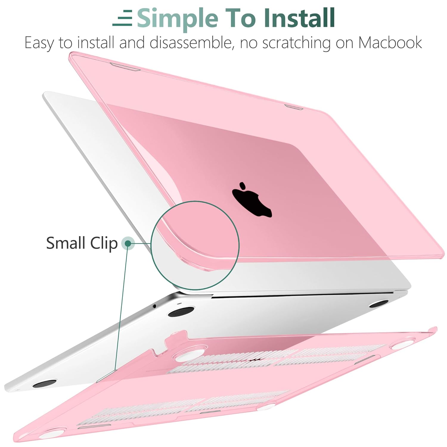 DONGKE Compatible with MacBook Air 13.6 inch Case M3 M2 2025 2024-2022 Release Model A3113 A2681 with Touch ID & Retina Display, Plastic Hard Shell Cover for MacBook Air M2 13 inch, Crystal Pink