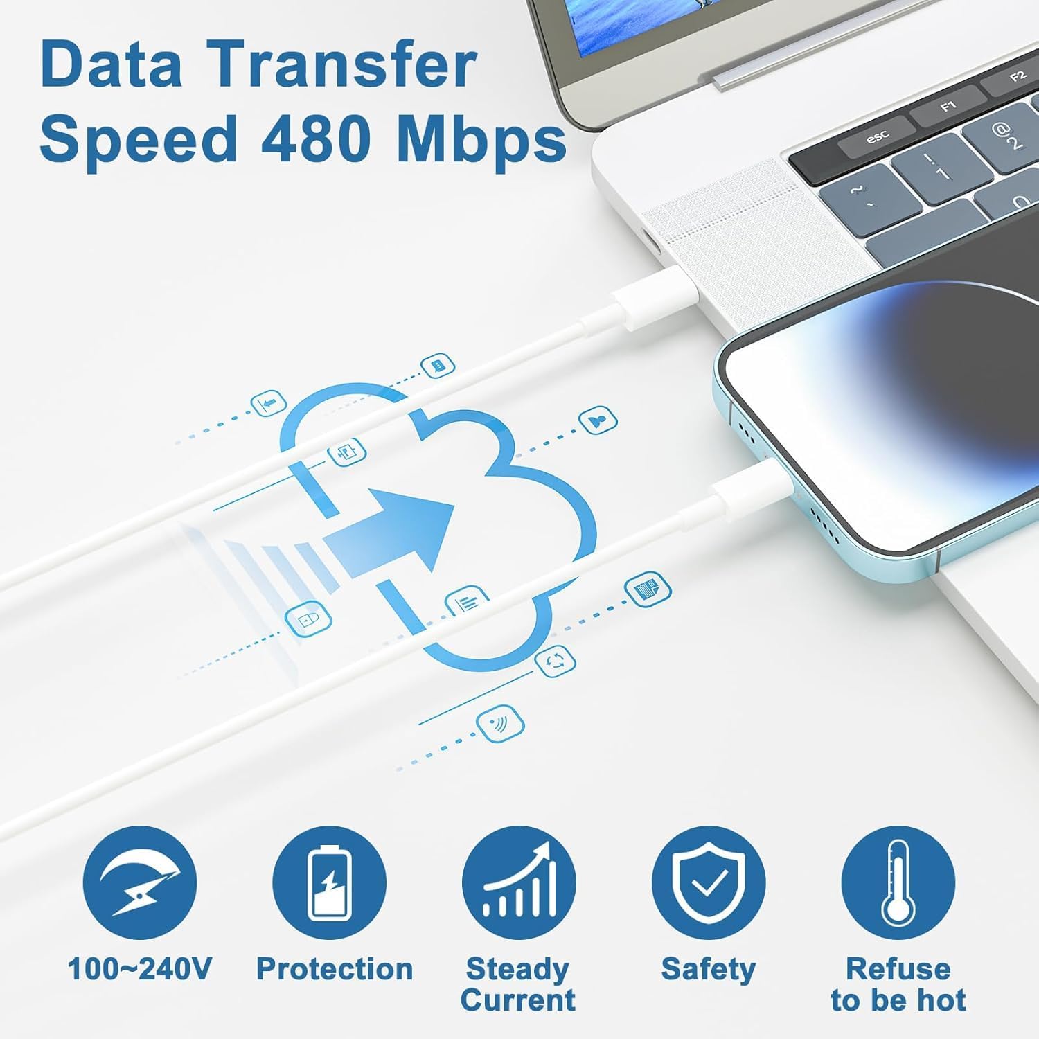 【MFi Certified】The Type C to Lightning charger cable uses the most advanced MFi Certified chip that increases the charging speed. Overheat and overcharge protection function to keep you and your device safe while syncing and charging PC or Mac running Windows at the fastest speed.