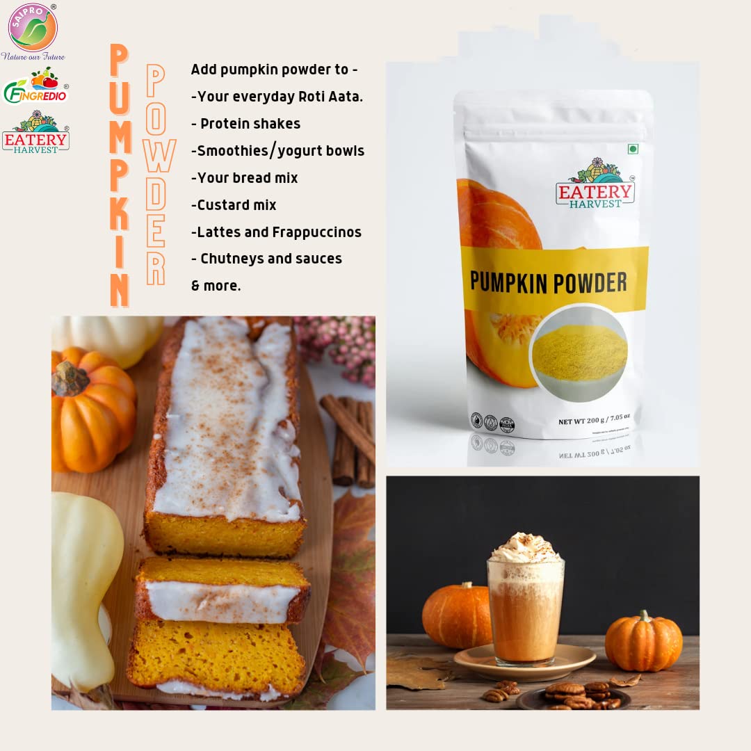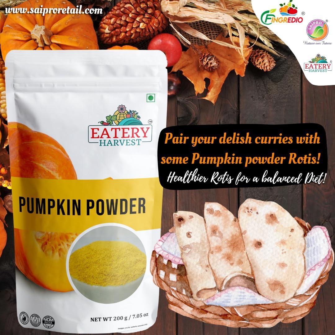 EATERY HARVEST by Saipro Pumpkin Powder 200 gm, High fiber Pumpkin Powder For Pumpkin Soup Mix| Baby Food| Kids weight Gain| Seasoning Gravy Mix, Gluten free aata mix, all natural,No preservatives