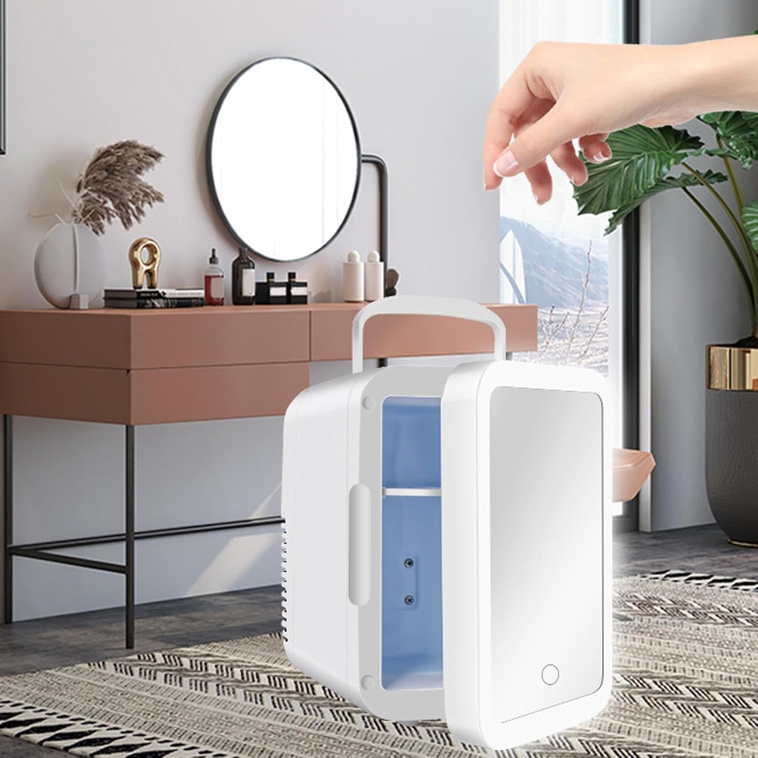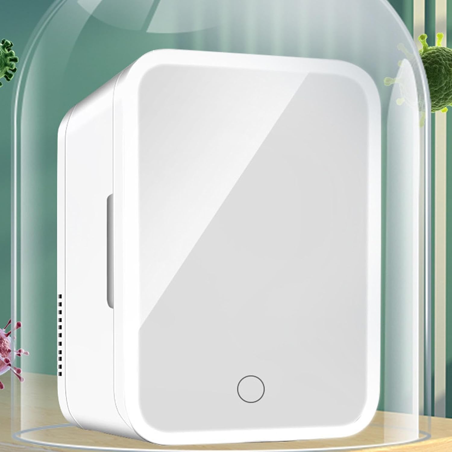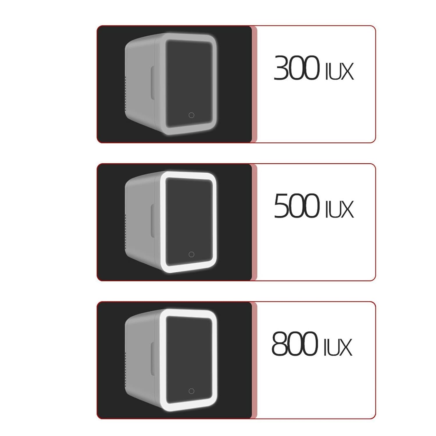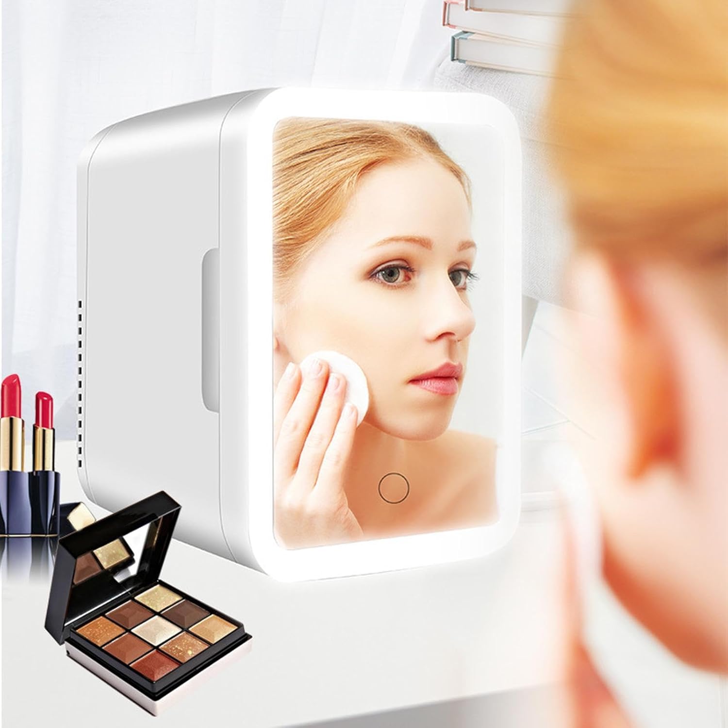 Stylish Design: The mini fridge designed with a mirror and LED lights specifically for makeup application anywhere you want. The LED lights is controlled by a touch sensor switch and the brightness of the LED makeup mirror can be adjusted via touch screen, enabling makeup application even in dark or poorly lit areas.