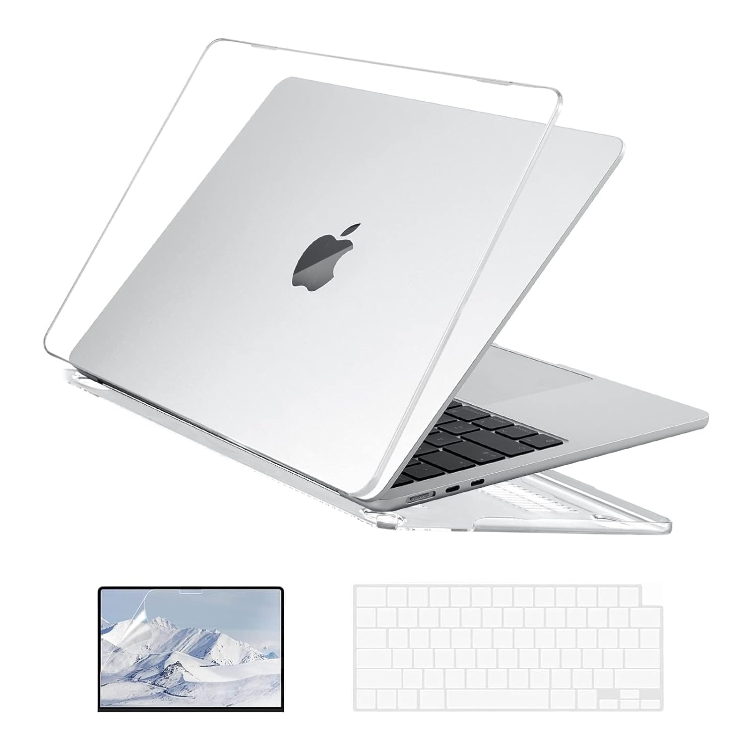 EooCoo Hard Shell Case Compatible for MacBook Air 13.6 inch 2025 2024 2022 M4 A3240 M3 A3113 M2 A2681 Retina Display&Touch ID,M2 M3 M4 Air 13″ for Keyboard Skin Cover&Screen Protector – Crystal Clear
