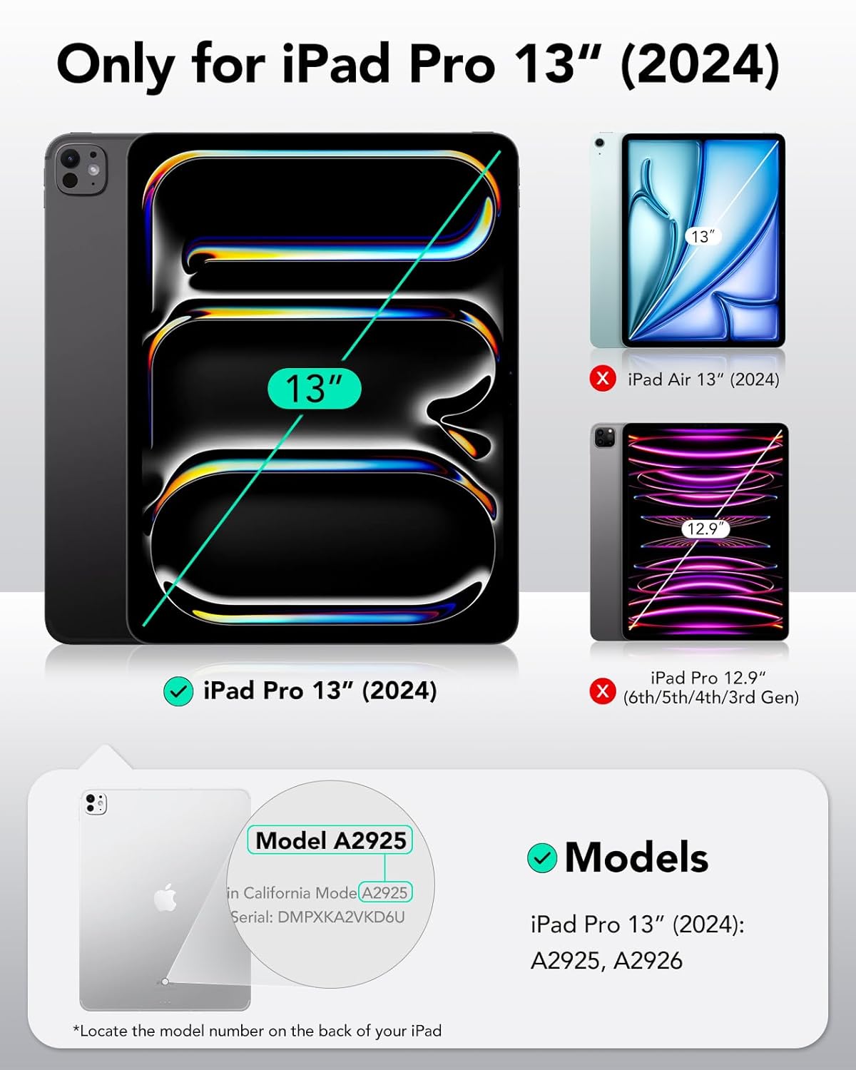 Compatibility: only for iPad Pro 13ʺ (7th Gen, 2024); models: A2925, A2926; not compatible with any other iPad models