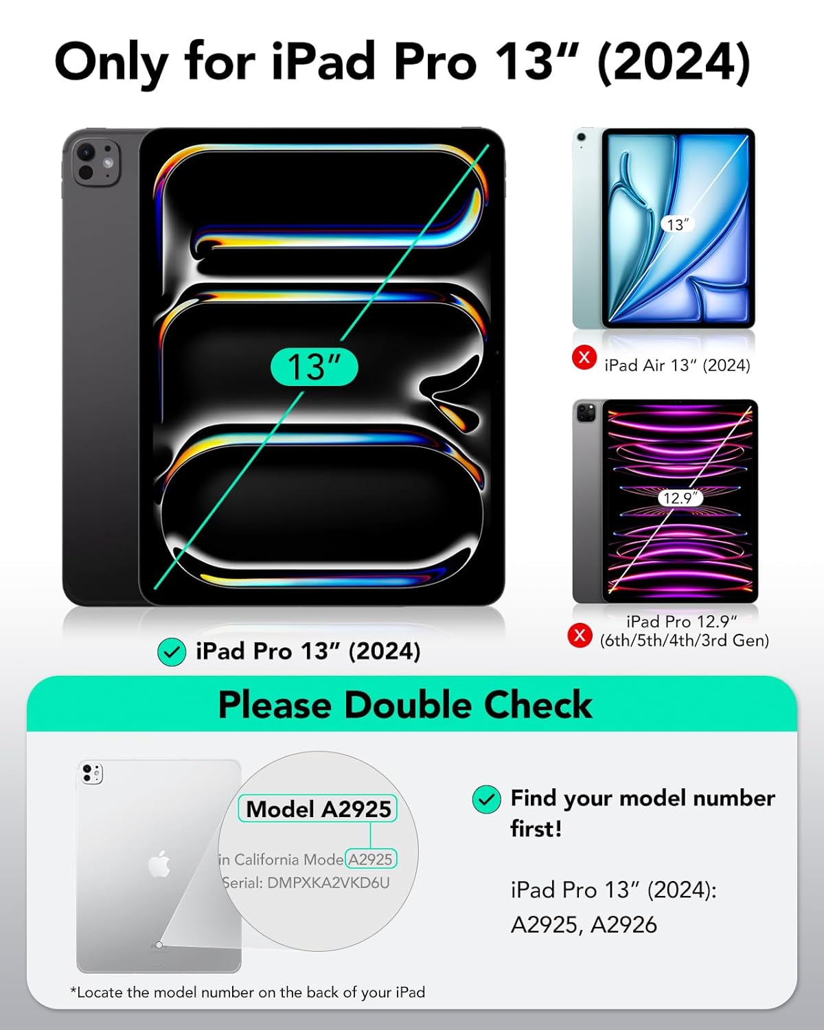 Compatibility: only for iPad Pro 13″ (2024); models: A2925, A2926, not compatible with any other iPad models
