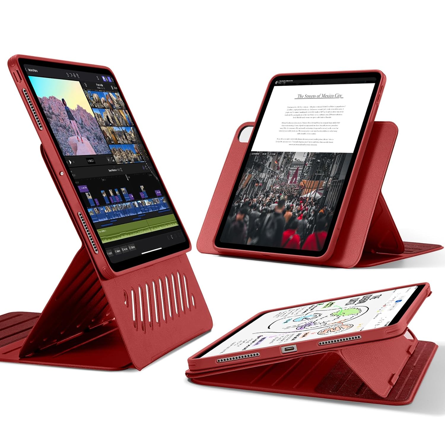 ESR for iPad Pro 13 inch Cover M4(2024), iPad Pro 13 Rotating Case with Removable Magnetic Cover, Adjustable Portrait/Landscape Stand with Raised Screen View, 9 Standing Angles, Shift Series, Red