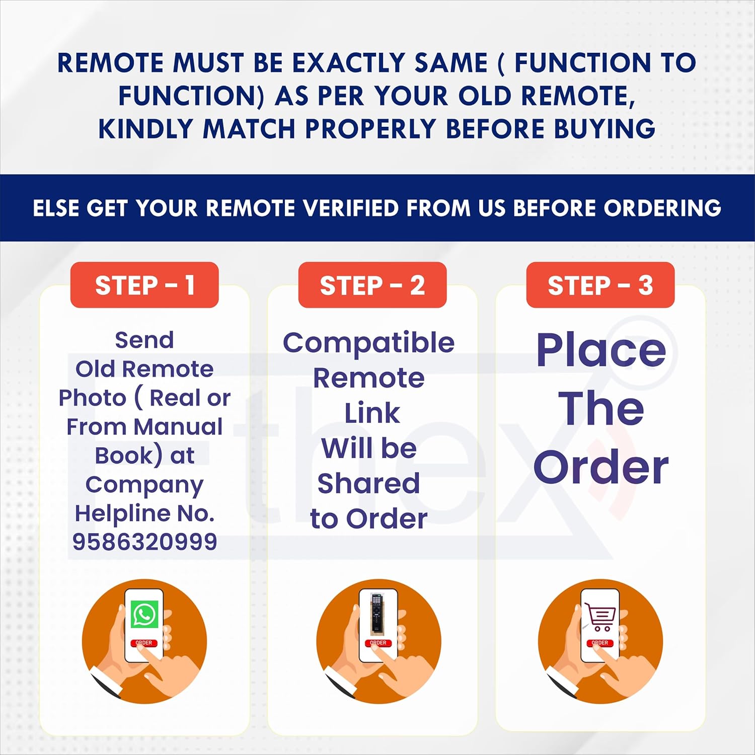 ■Before order you have to check all images of remote. If you have confused to select remote, you can contact on company helpline number. we will guide you properly to select Remote.