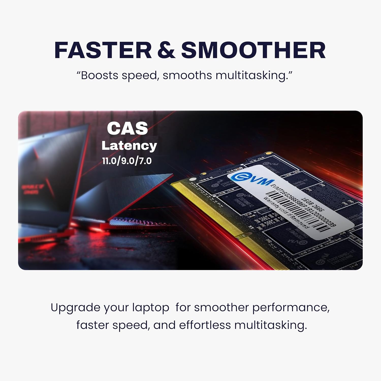 EVM 16GB DDR4 Laptop RAM 2666MHz – Update Your Laptop’s Performance – CL15 Latency – Compatible with Intel, AMD, and Mac Systems – 10 Years Warranty (EVMT16G2666S86P)