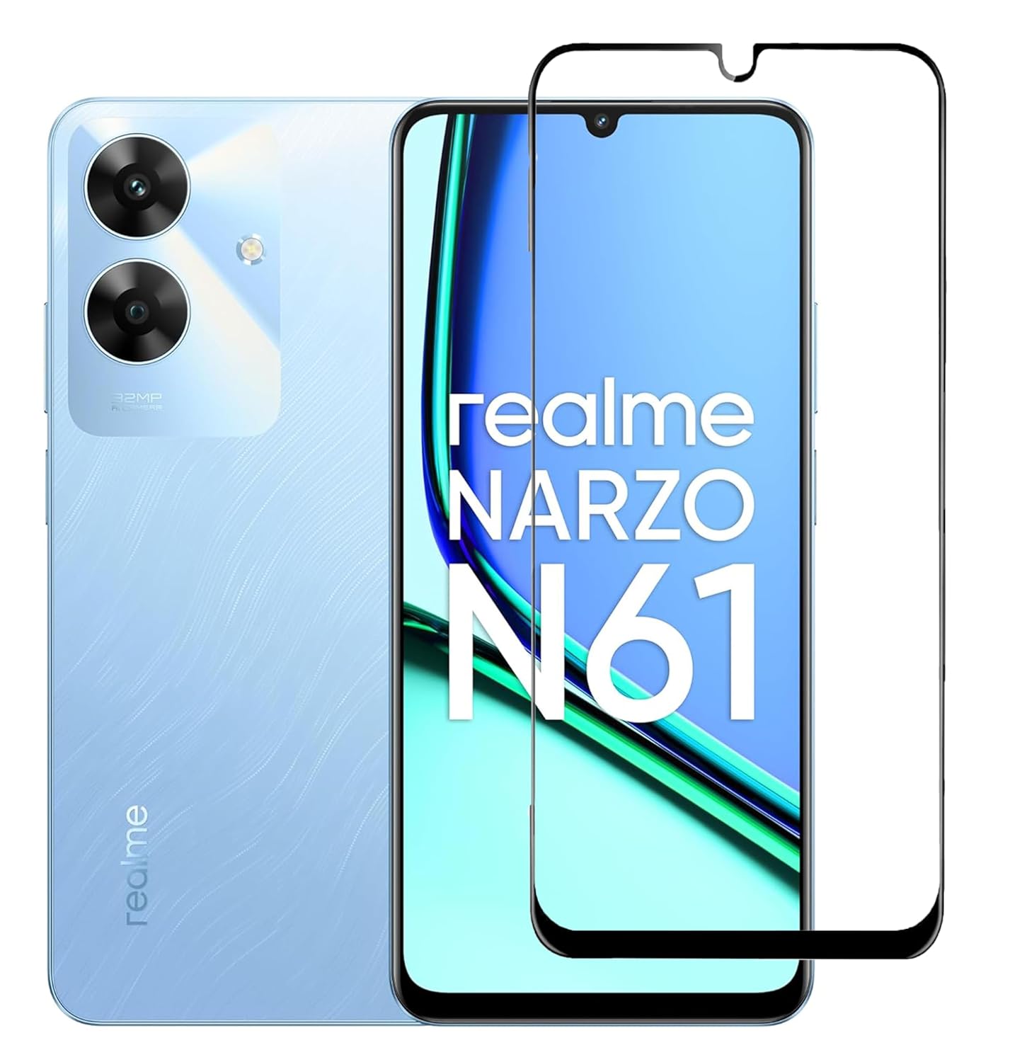 FabeKee Tempered Glass Screen Protector Compatible For Realme Narzo N61 Smartphone Black With Edge-To-Edge Protector Coverage And Easy Installation Kit (Realme Narzo N61)