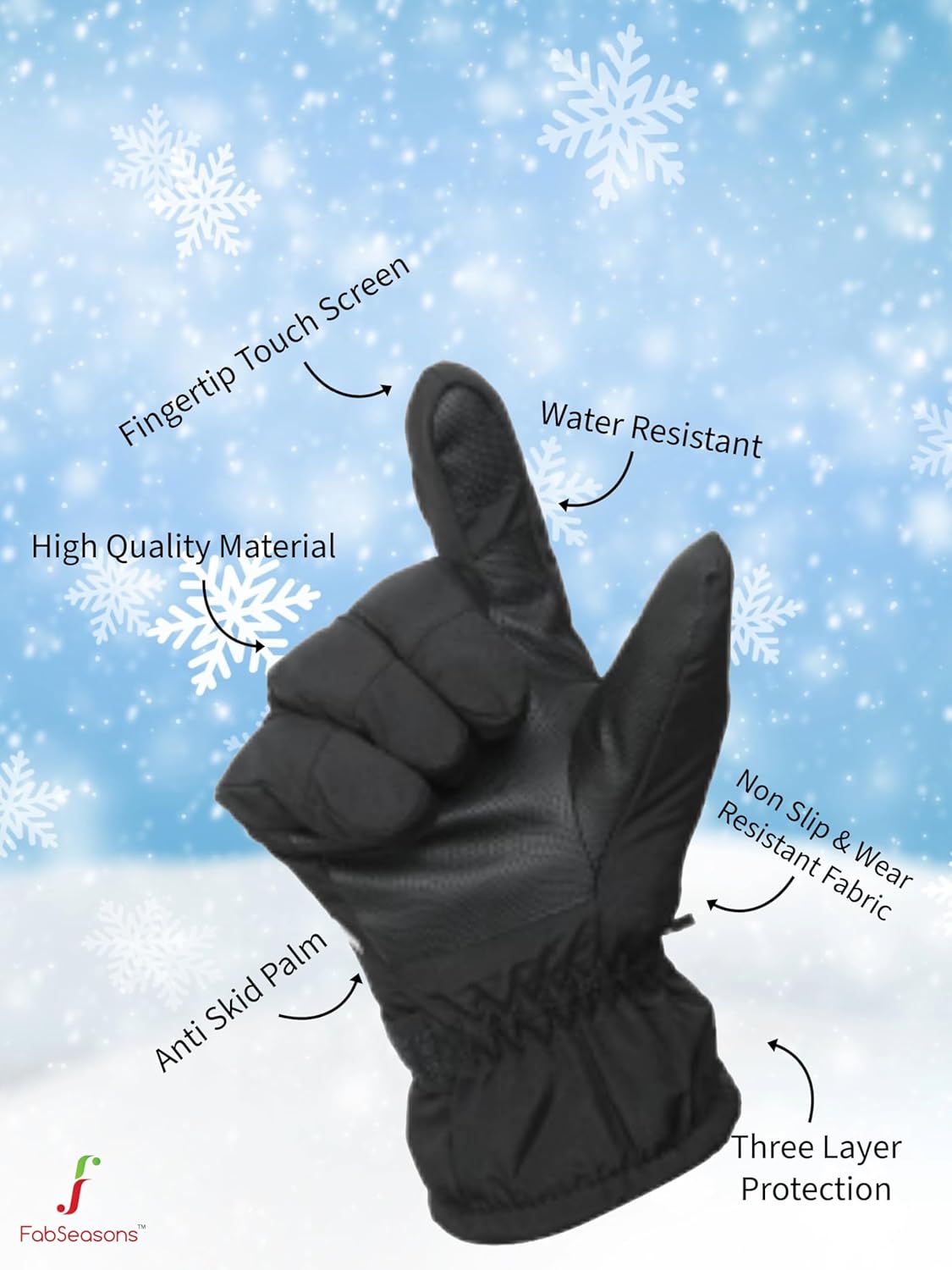 FabSeasons Unisex Touchscreen Winter Gloves – Water-Resistant, Warm Acrylic Gloves with Adjustable Velcro, Fits Ages 14+