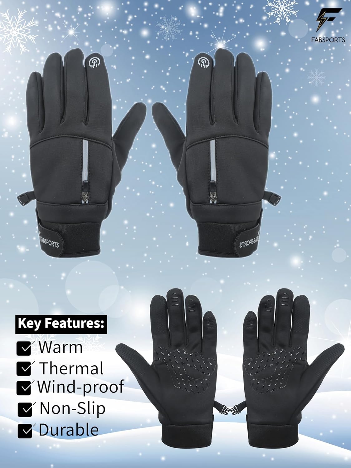 FABSPORTS Touchscreen Winter Gloves for Men & Women – Reflective, Anti-Slip, Windproof, Thermal Gloves for Cycling, Running, Driving & Outdoor Activities