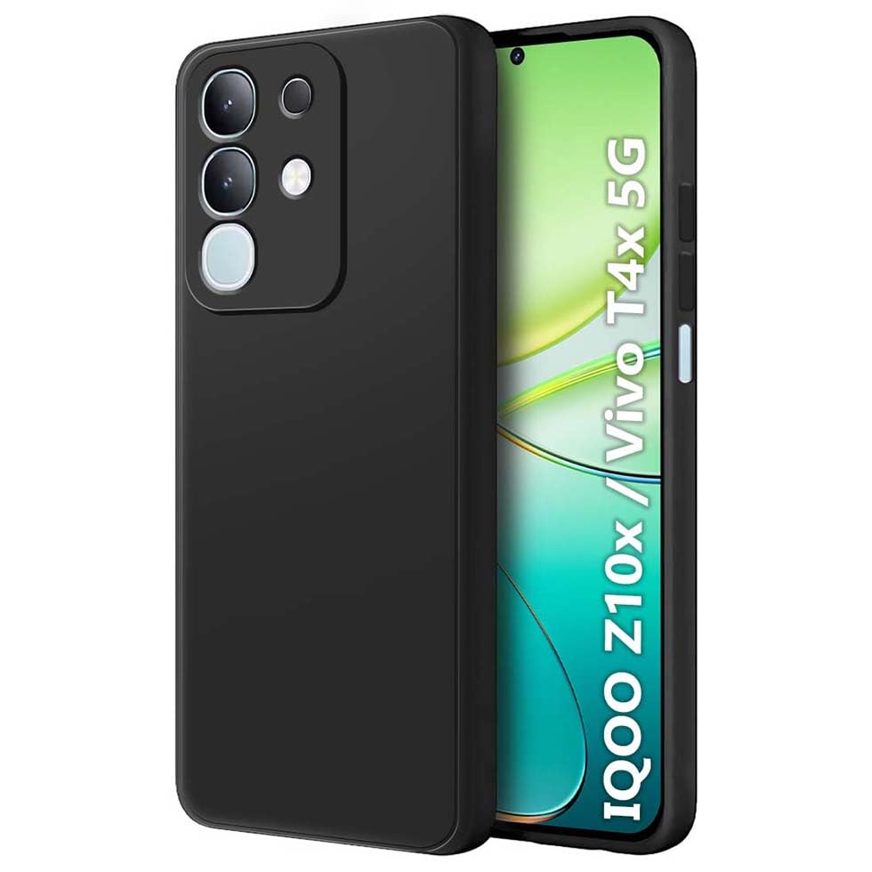 Fashionury Back Cover Case Cover for iQOO Z10x 5G / Vivo T4X 5G | Matte Soft Silicon Flexible |Camera Bump Protection | All Side Shock Proof Rubberised Back Case for iQOO Z10x 5G / Vivo T4X 5G (Black)