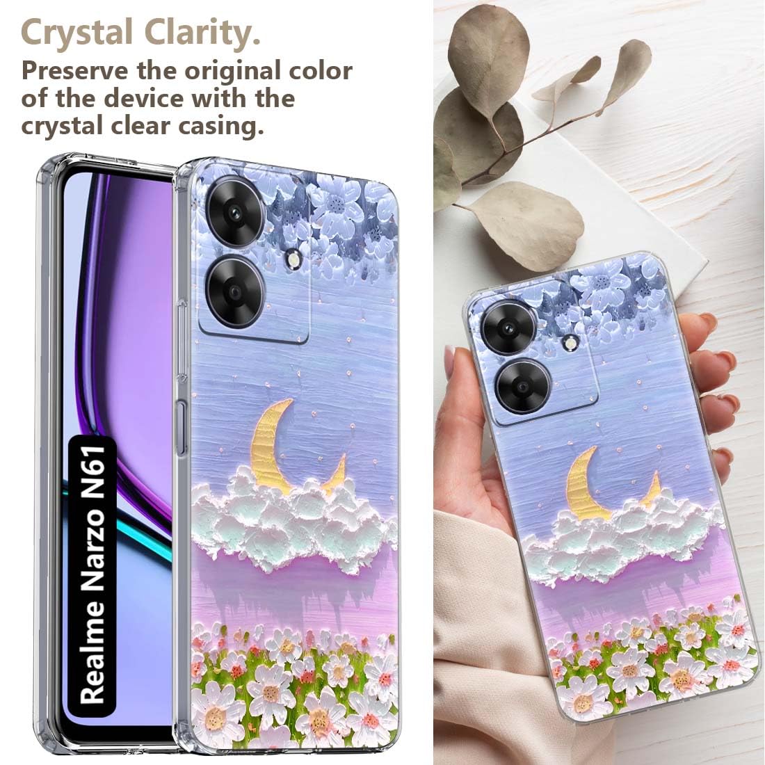 Fashionury Back Cover Case Designer Flexible Soft Back Case Cover for realme NARZO N61 -D1151