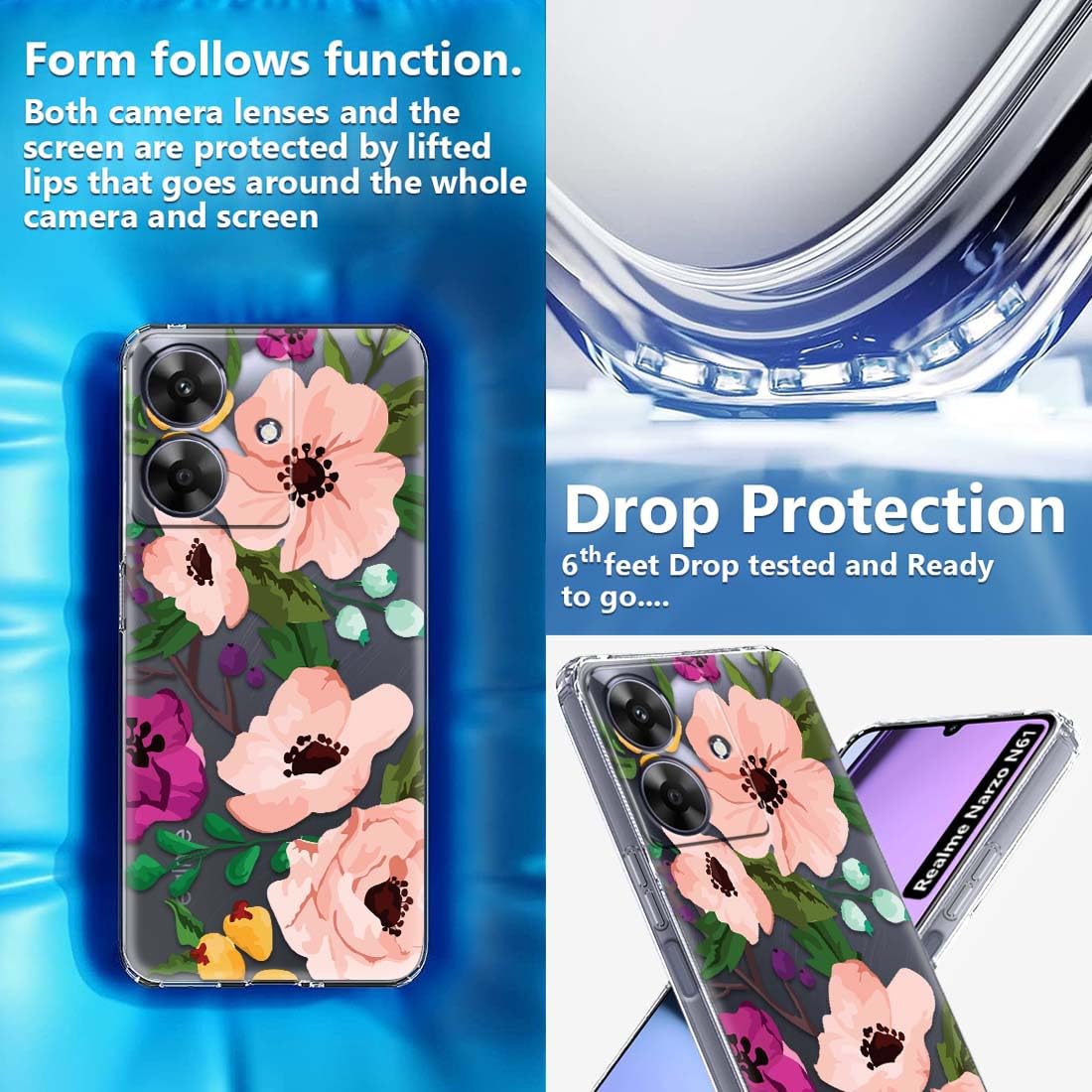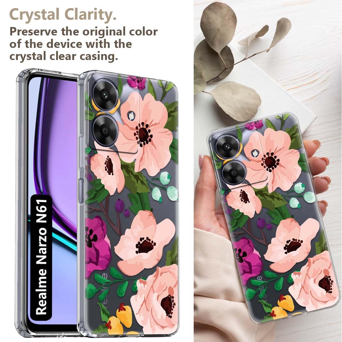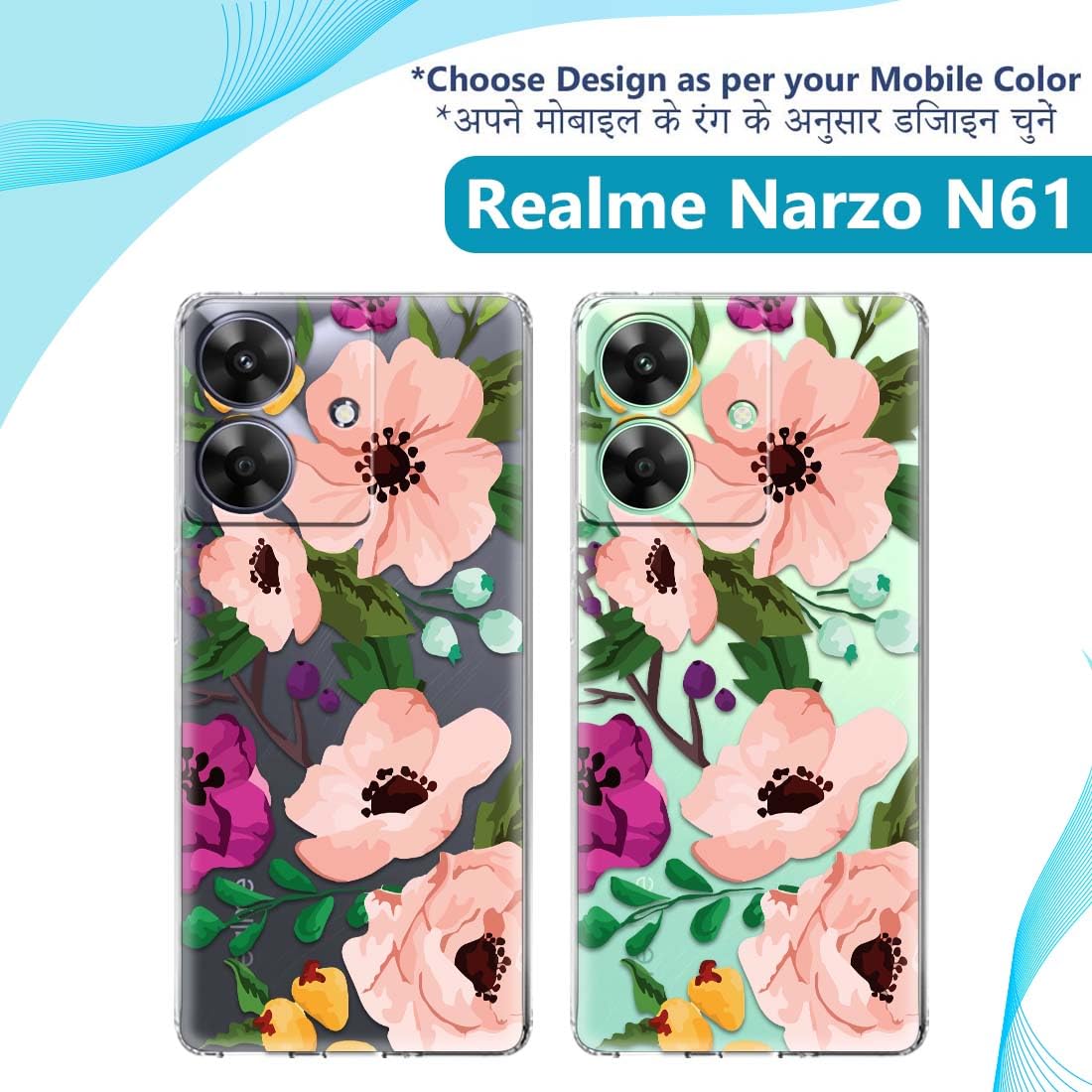 Fashionury Designer Soft Back Cover Case Compatible for realme NARZO N61, Printed,Transparent,Flexible, Silicon for realme NARZO N61-D2124