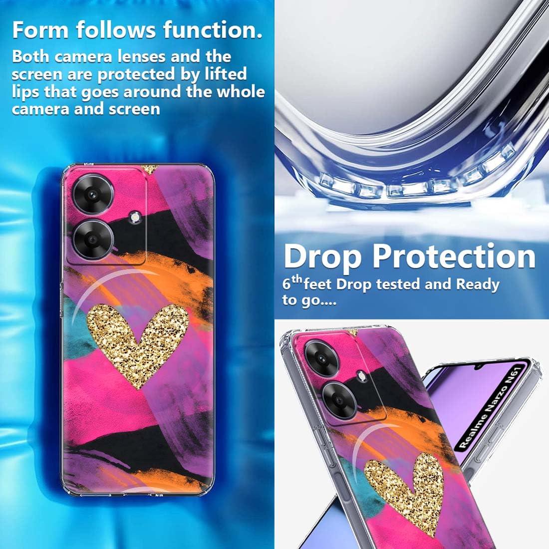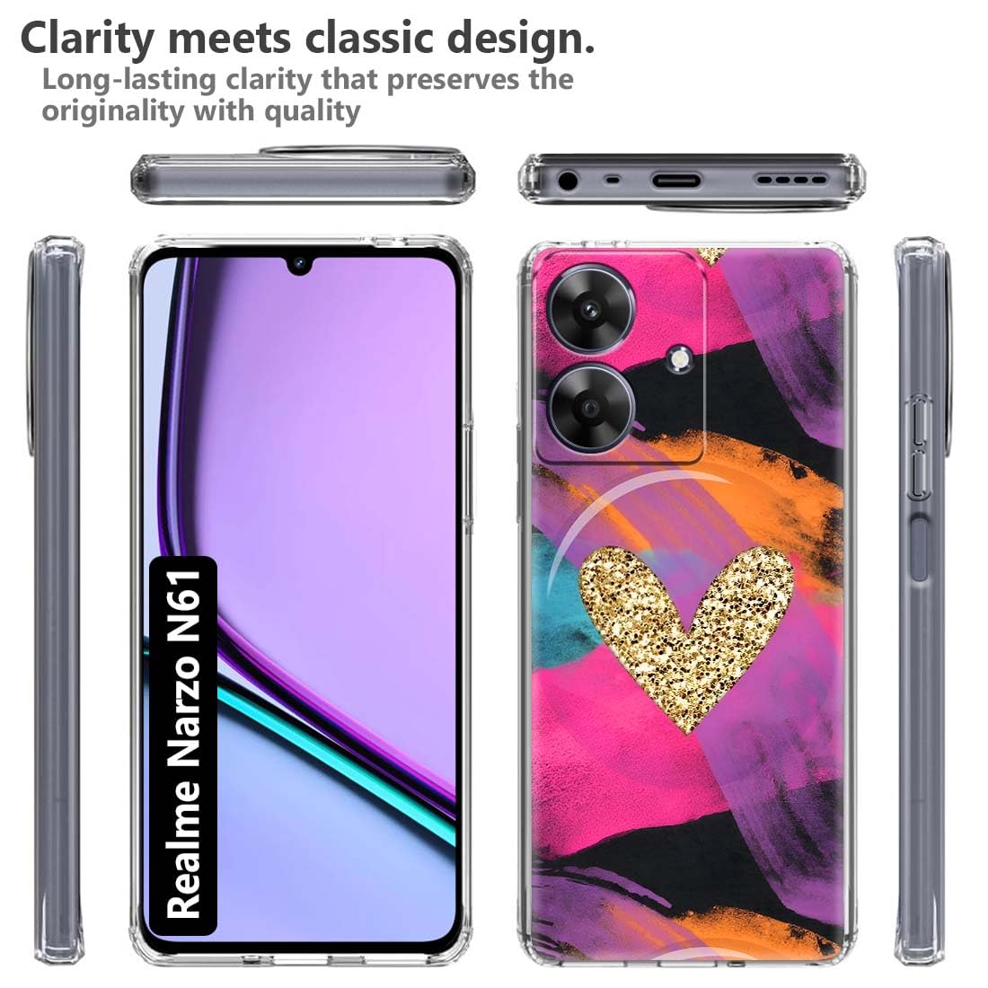 Fashionury Designer Soft Back Cover Case Compatible for realme NARZO N61, Printed,Transparent,Flexible, Silicon for realme NARZO N61-D3168