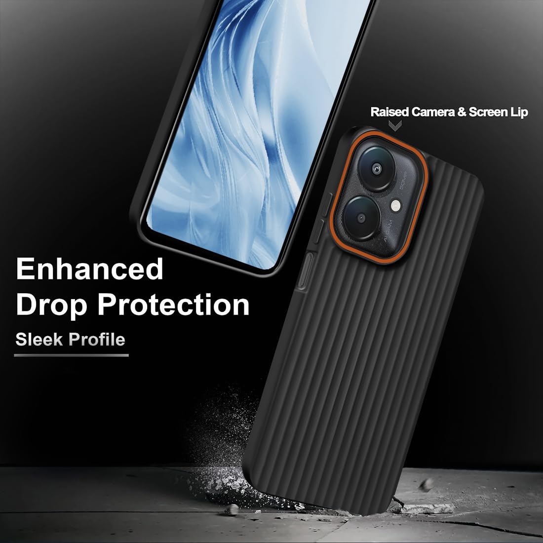 Elevate your mobile protection with this sleek and stylish case designed. The sophisticated vertical ribbed pattern not only adds a premium aesthetic but also enhances grip comfort. Featuring precise cutouts for the distinctive circular camera module with its orange accent ring, this case ensures your device’s photography capabilities remain unhindered. The durable construction offers reliable protection against daily wear and tear, while maintaining a slim profile that doesn’t add unnecessary bulk. The matte black finish resists fingerprints and smudges, keeping your device looking pristine. With perfect alignment for all ports, buttons, and sensors, this case provides seamless functionality without compromising on protection.