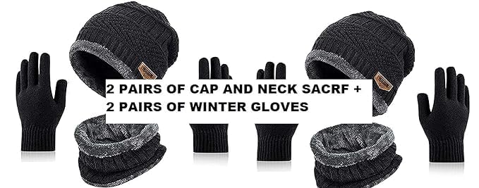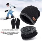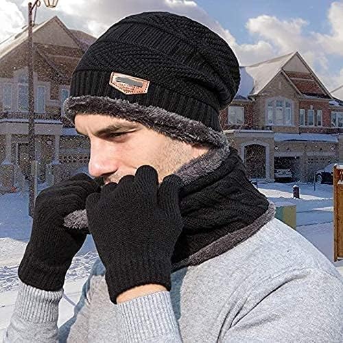 Feriiwala Winter Knit Beanie Cap Hat Neck Warmer Scarf and Woolen Gloves Set Skull Cap for Men Women/Winter Cap for Men (3 Piece)