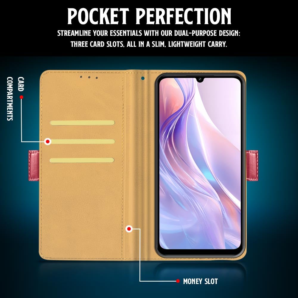 Precisely Crafted for Mi Redmi 13C 5G | Redmi 13C 4G | Poco M6 5G | Poco C65 – Vegan Leather Flip-Back Case Cover.