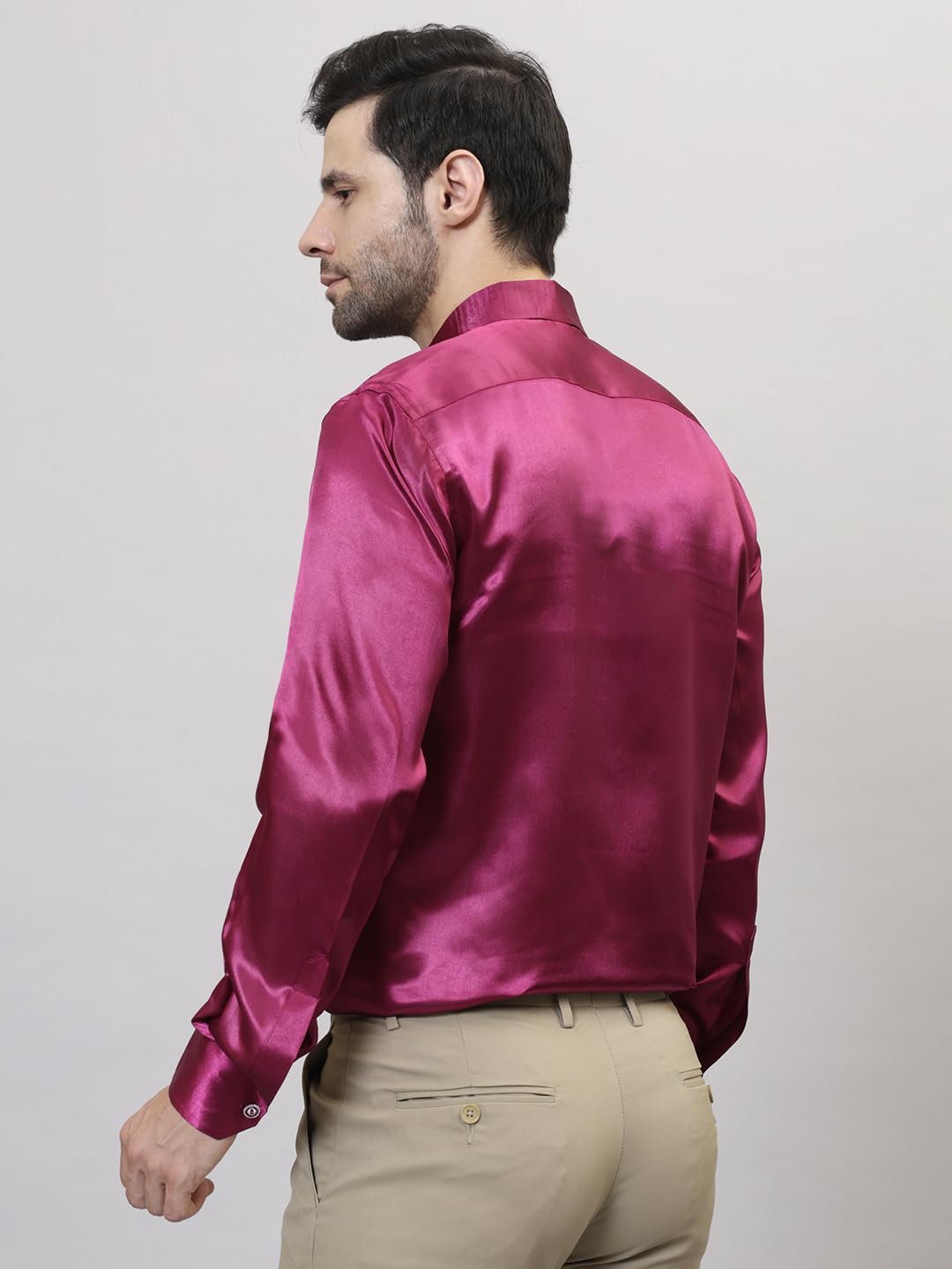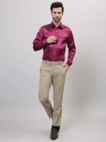 Frolic Rolic Mens Pink Satin Solid Full Sleeves Spread Collar Shirts