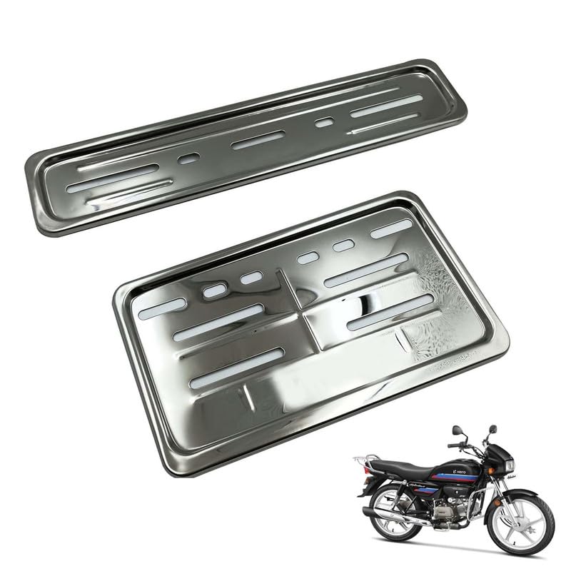GadiBike Bike Universal Front and Back Bike Number Plate/Frame/Numberplate/Numberframe Cover Standard Size Silver for Yamaha2 R32 Bajaj Discover 100 M/T DTS-i