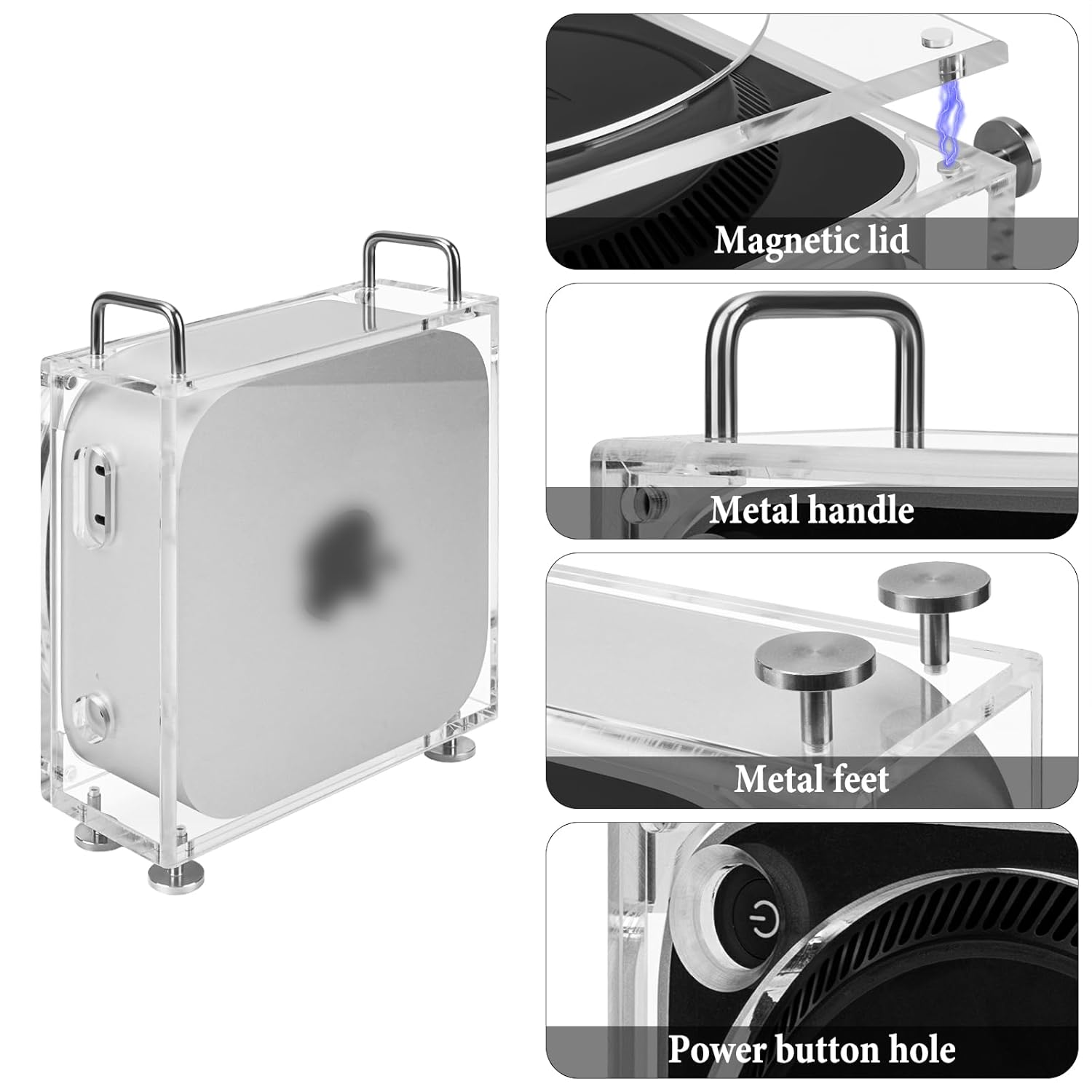 Compared with traditional glass materials, acrylic materials are durable and easy to clean, which can fully protect the host. In addition, the upper and lower magnetic opening and closing design is not only easy to assemble, but also easy to carry.